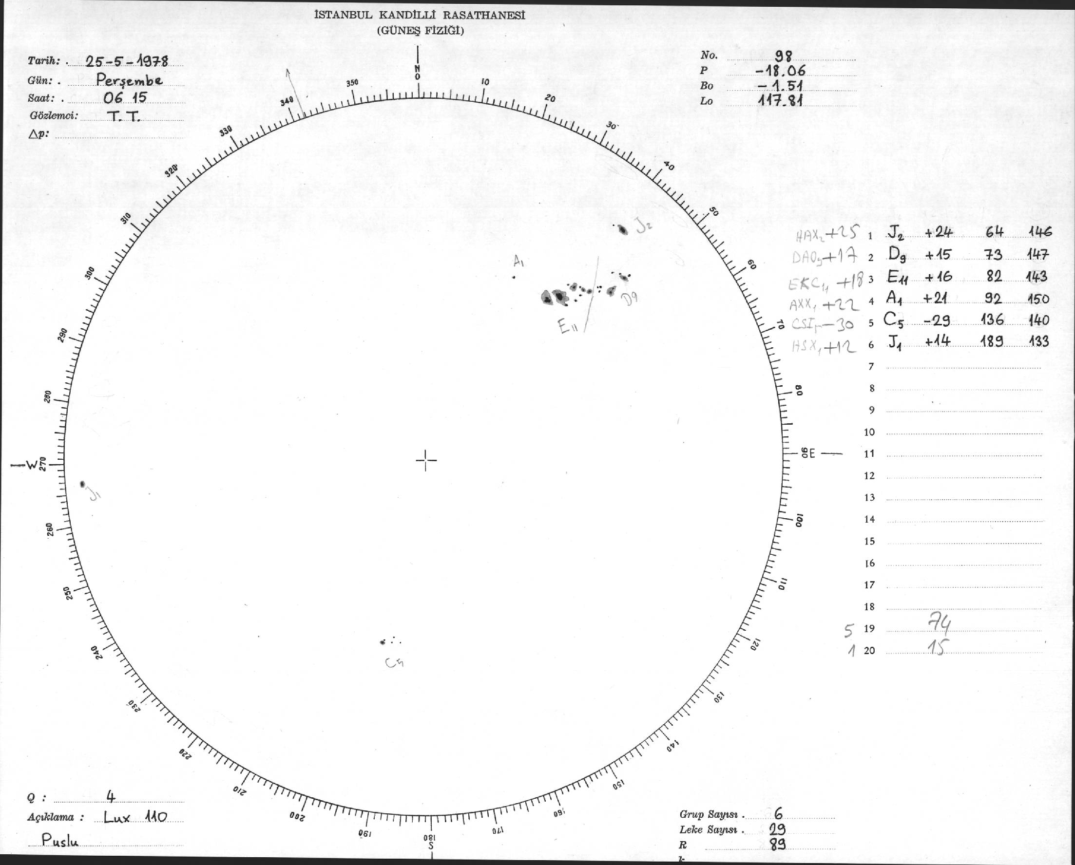 Güneş Lekesi Çizimi - 25.05.1978