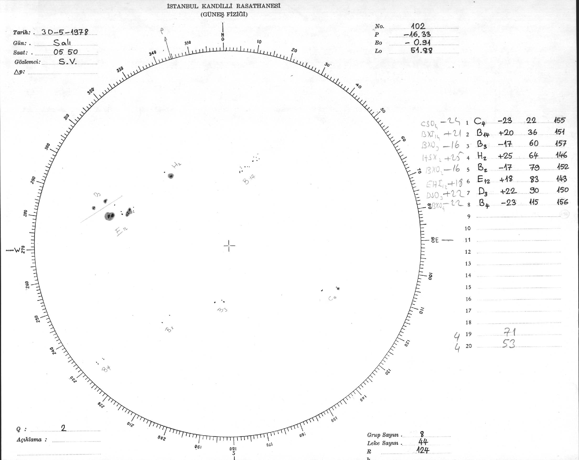 Güneş Lekesi Çizimi - 30.05.1978