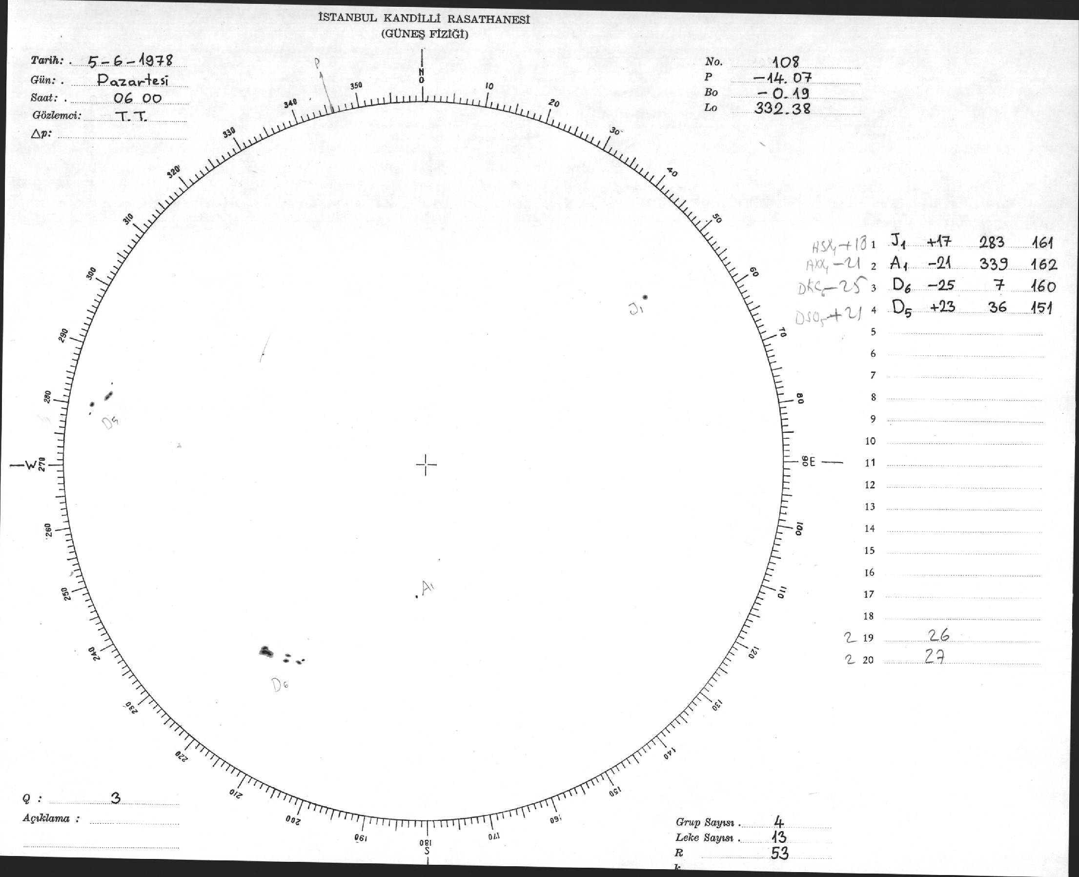 Güneş Lekesi Çizimi - 05.06.1978