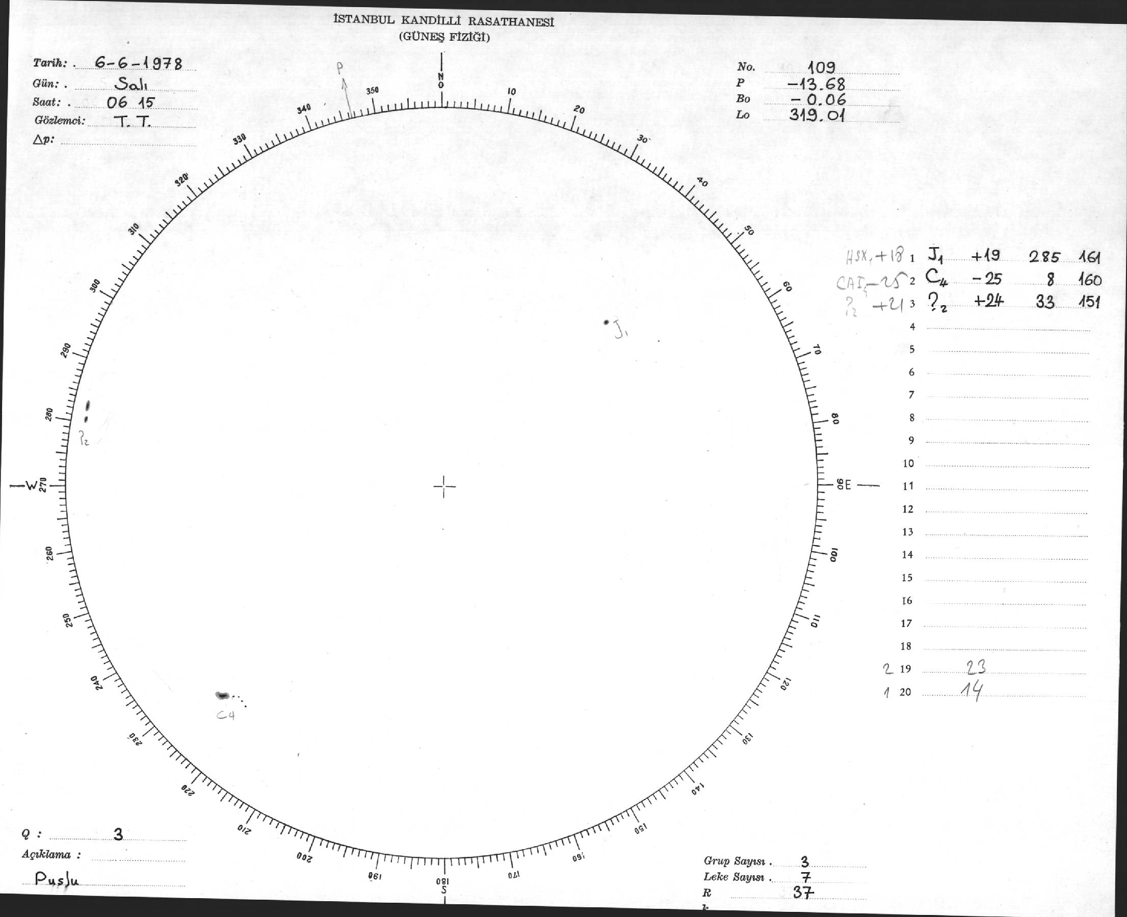 Güneş Lekesi Çizimi - 06.06.1978