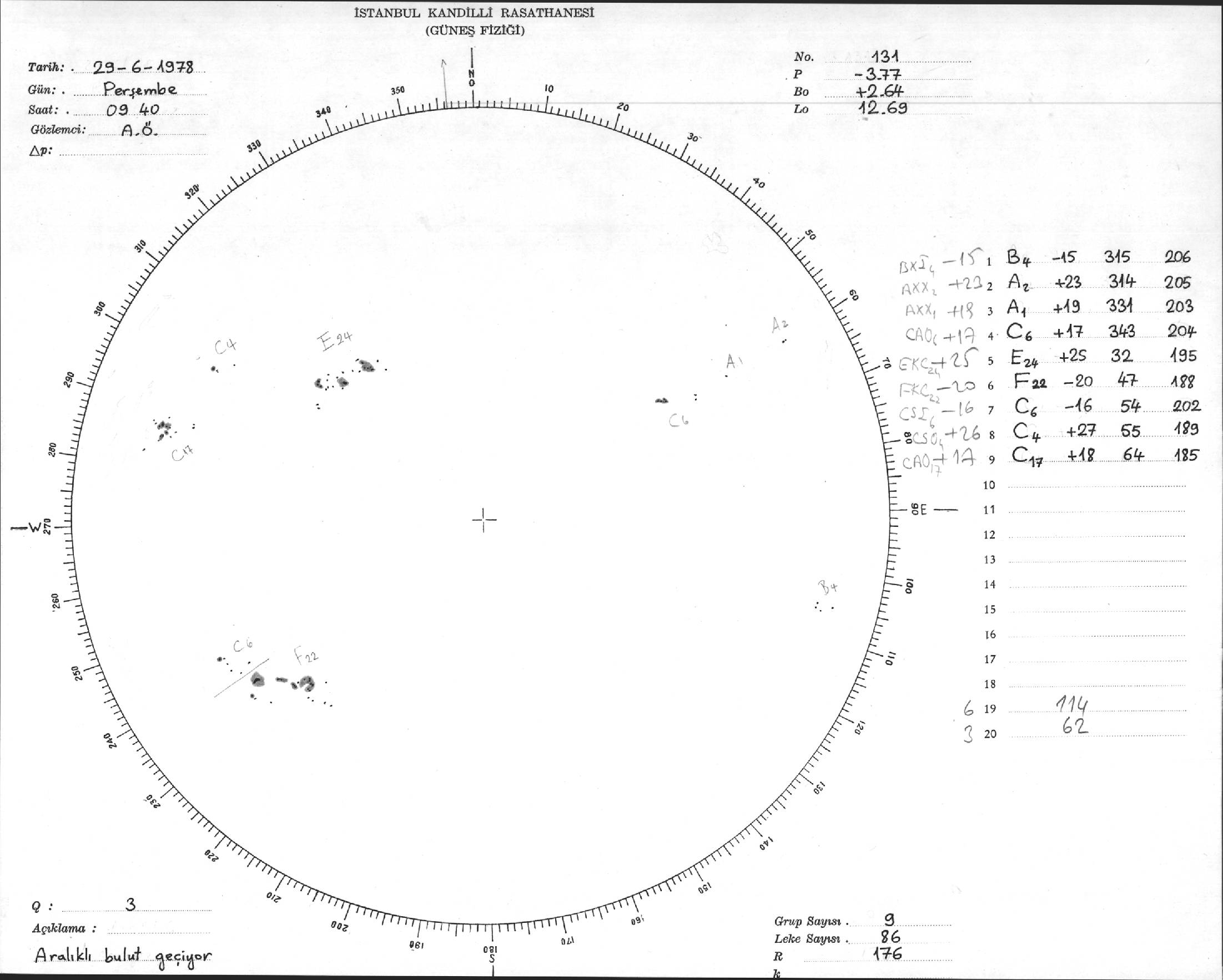 Güneş Lekesi Çizimi - 29.06.1978