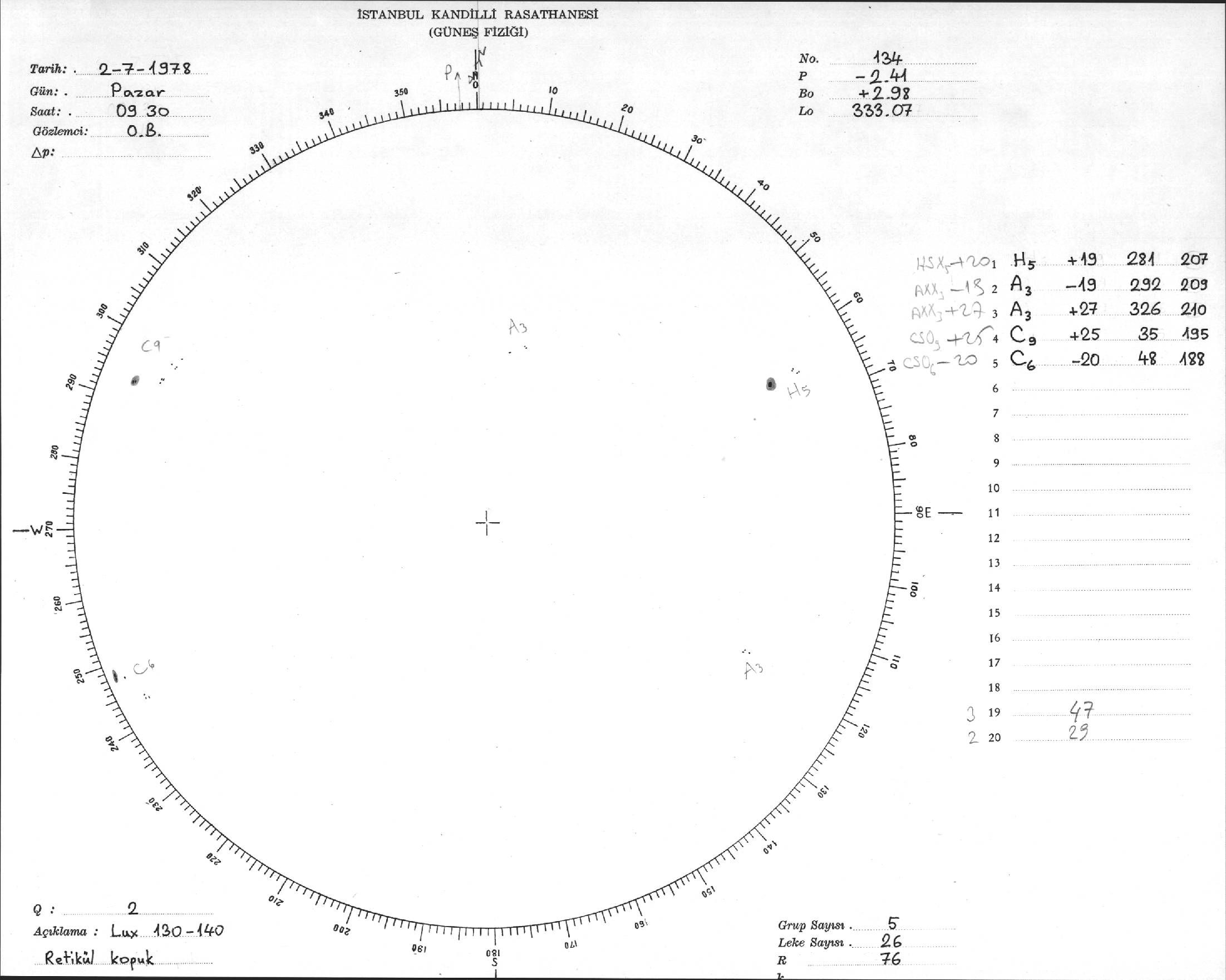 Güneş Lekesi Çizimi - 02.07.1978