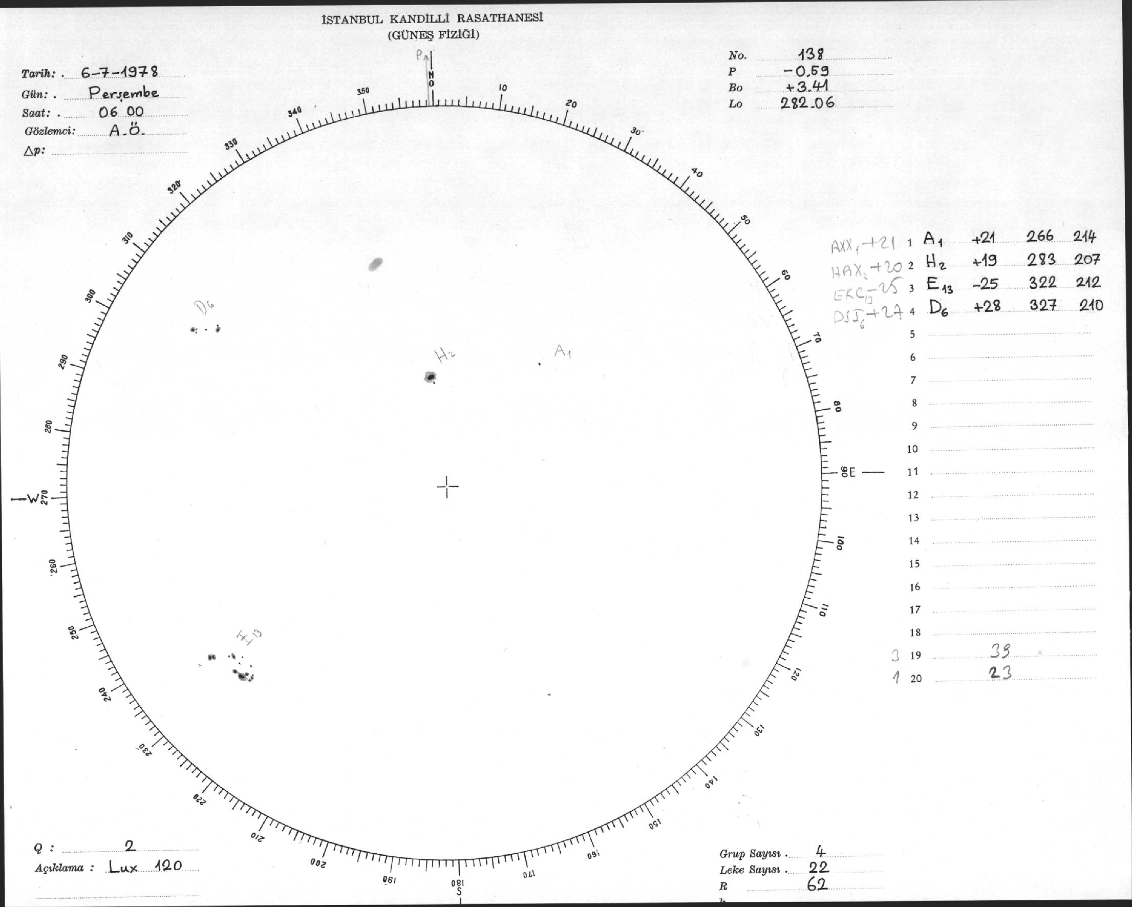 Güneş Lekesi Çizimi - 06.07.1978