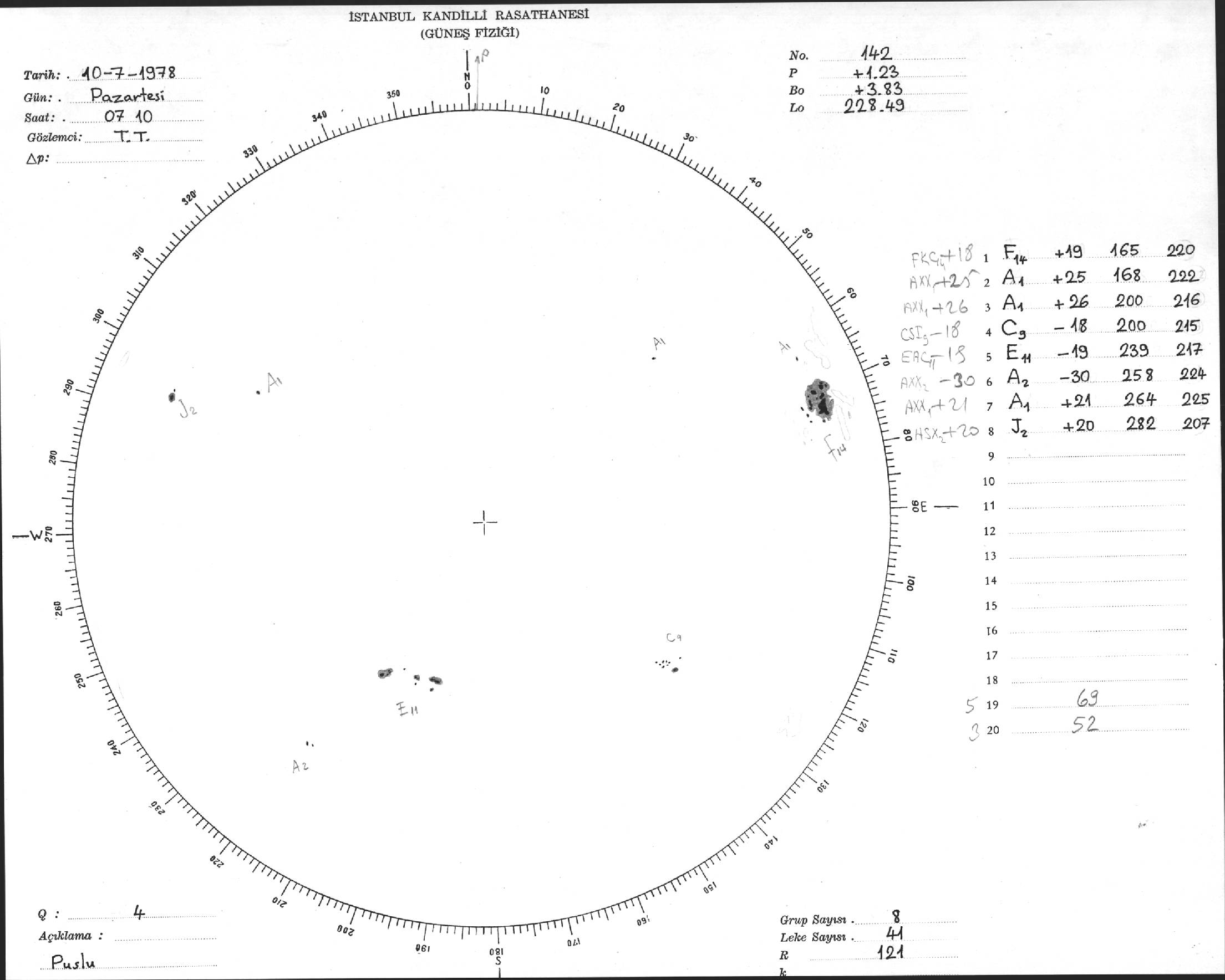 Güneş Lekesi Çizimi - 10.07.1978