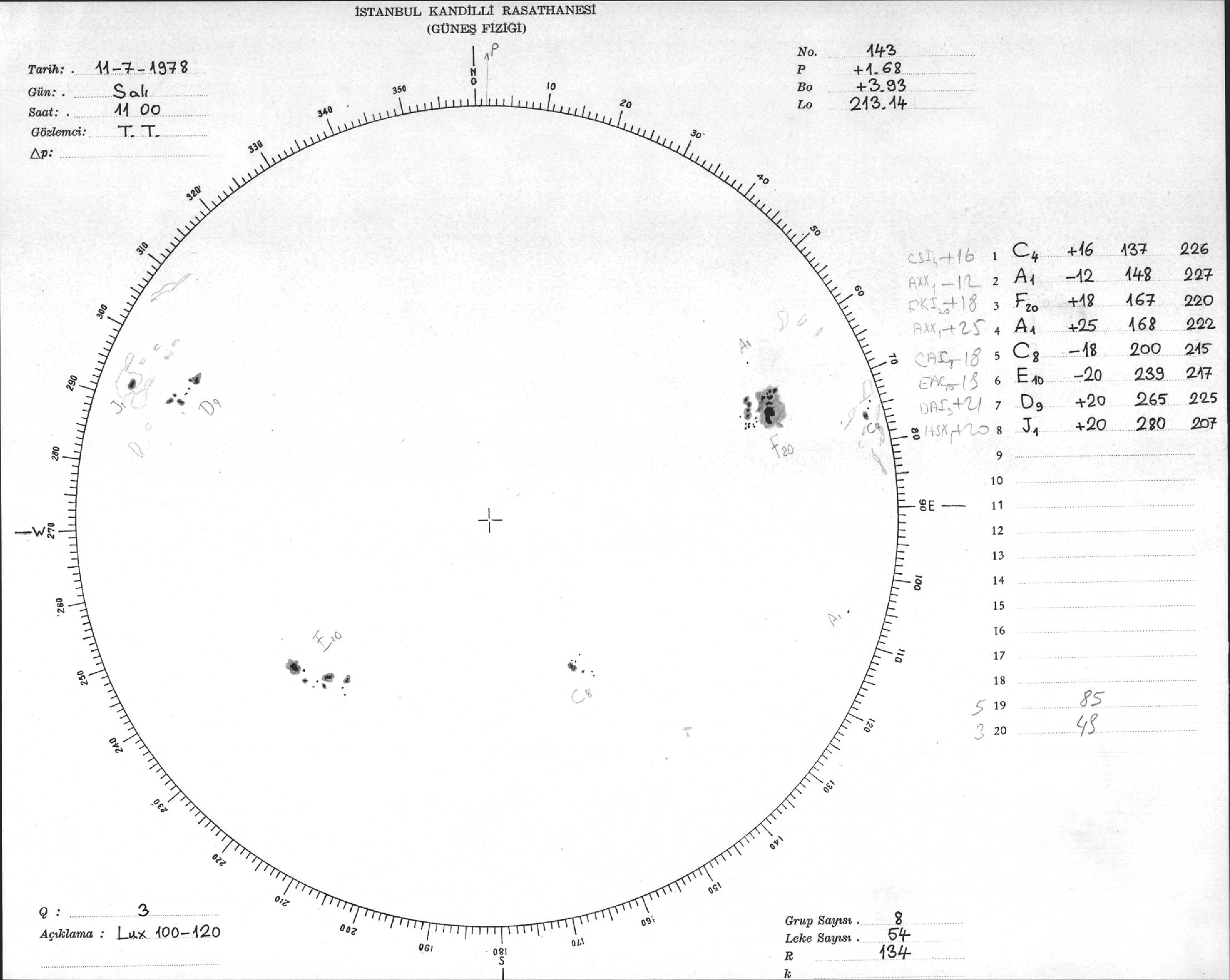 Güneş Lekesi Çizimi - 11.07.1978