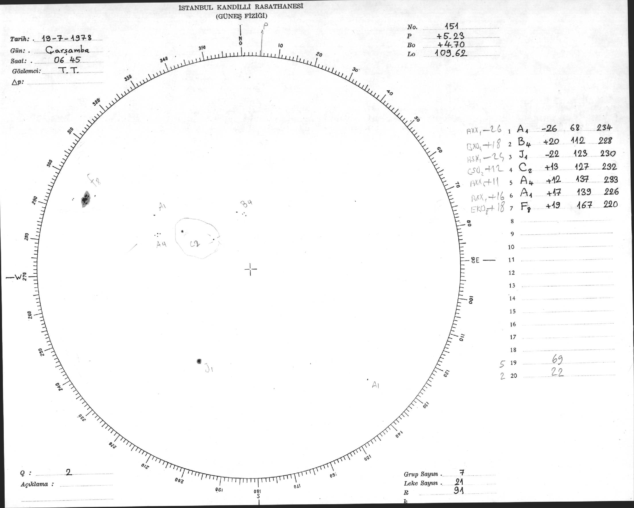 Güneş Lekesi Çizimi - 19.07.1978