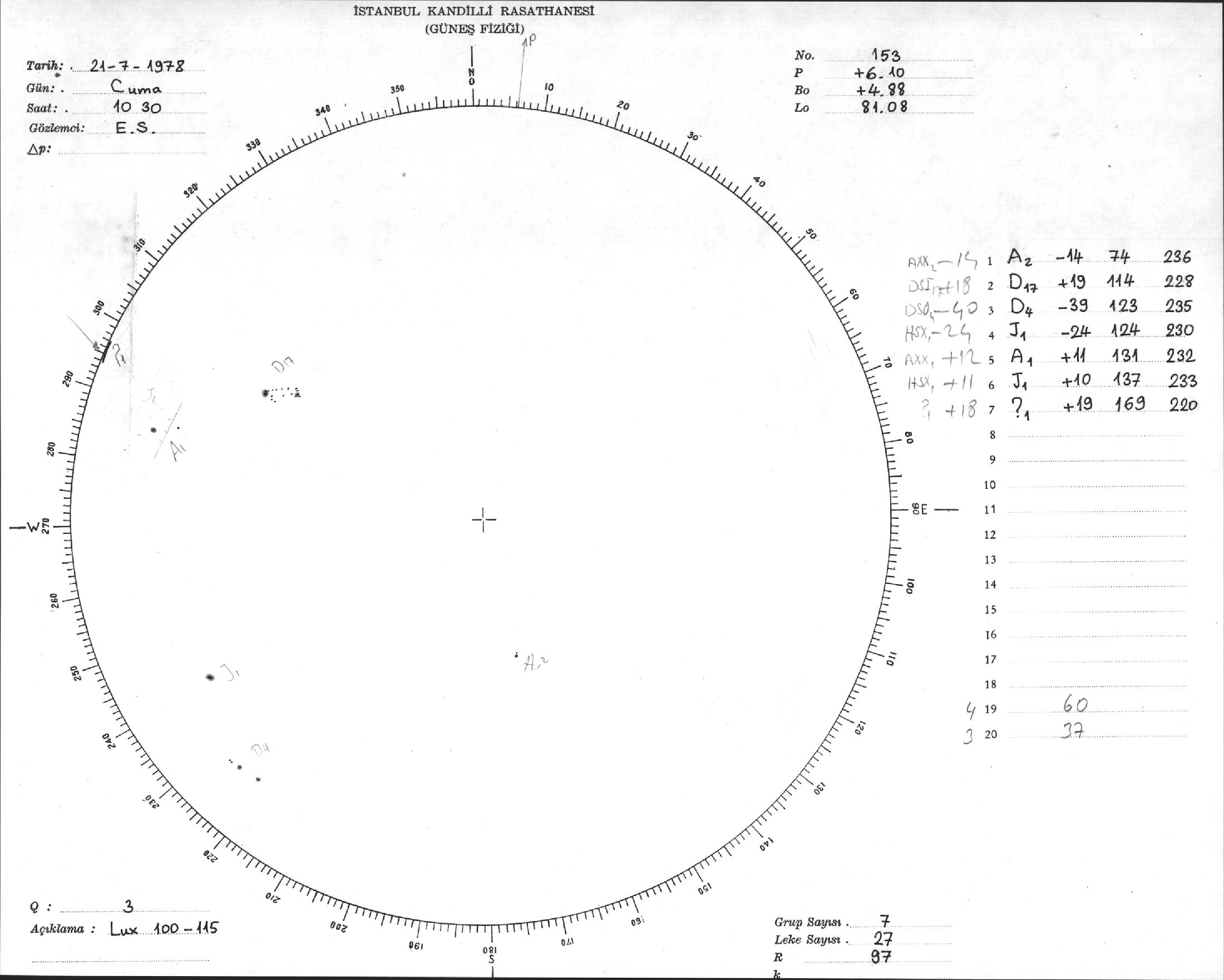 Güneş Lekesi Çizimi - 21.07.1978