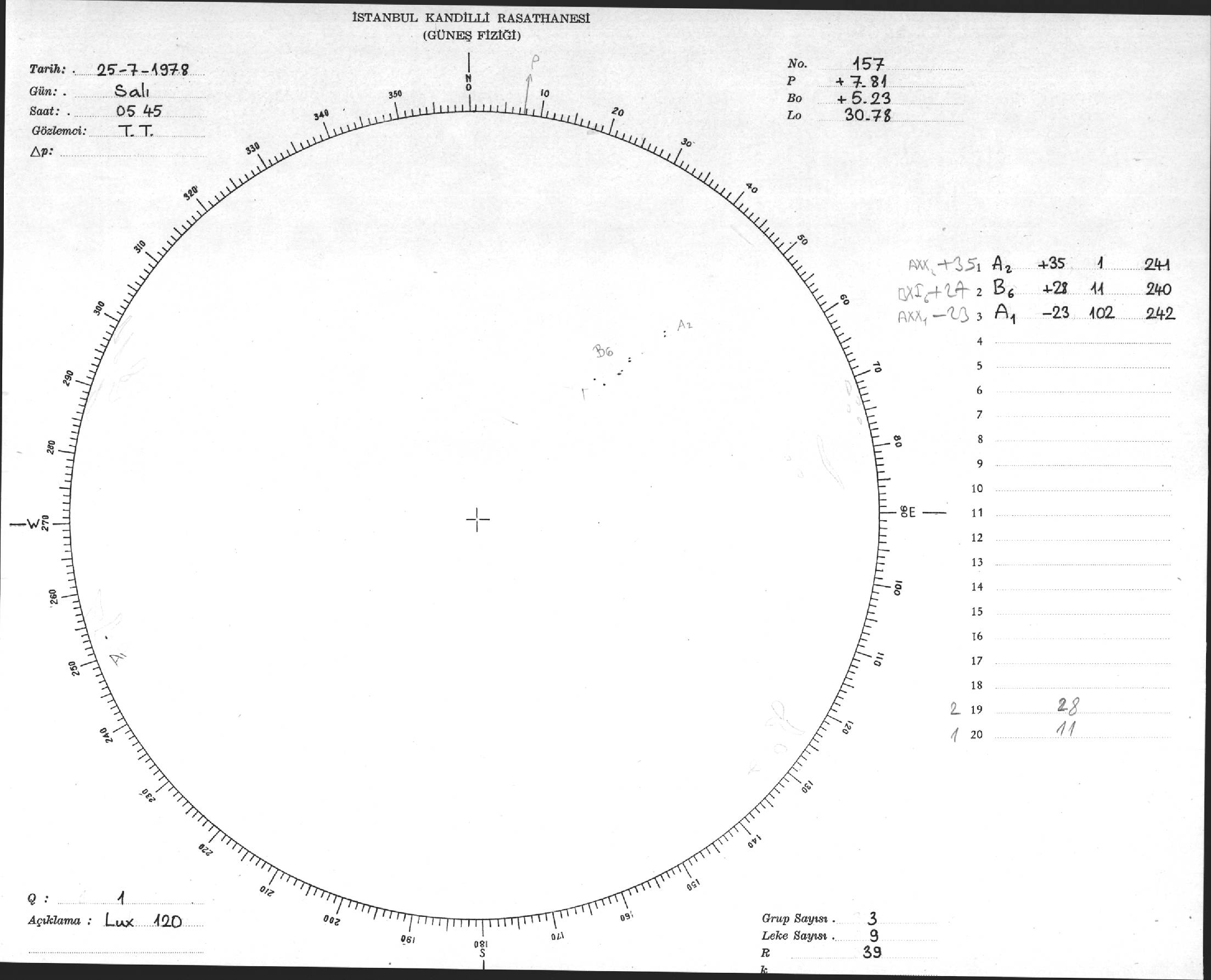 Güneş Lekesi Çizimi - 25.07.1978