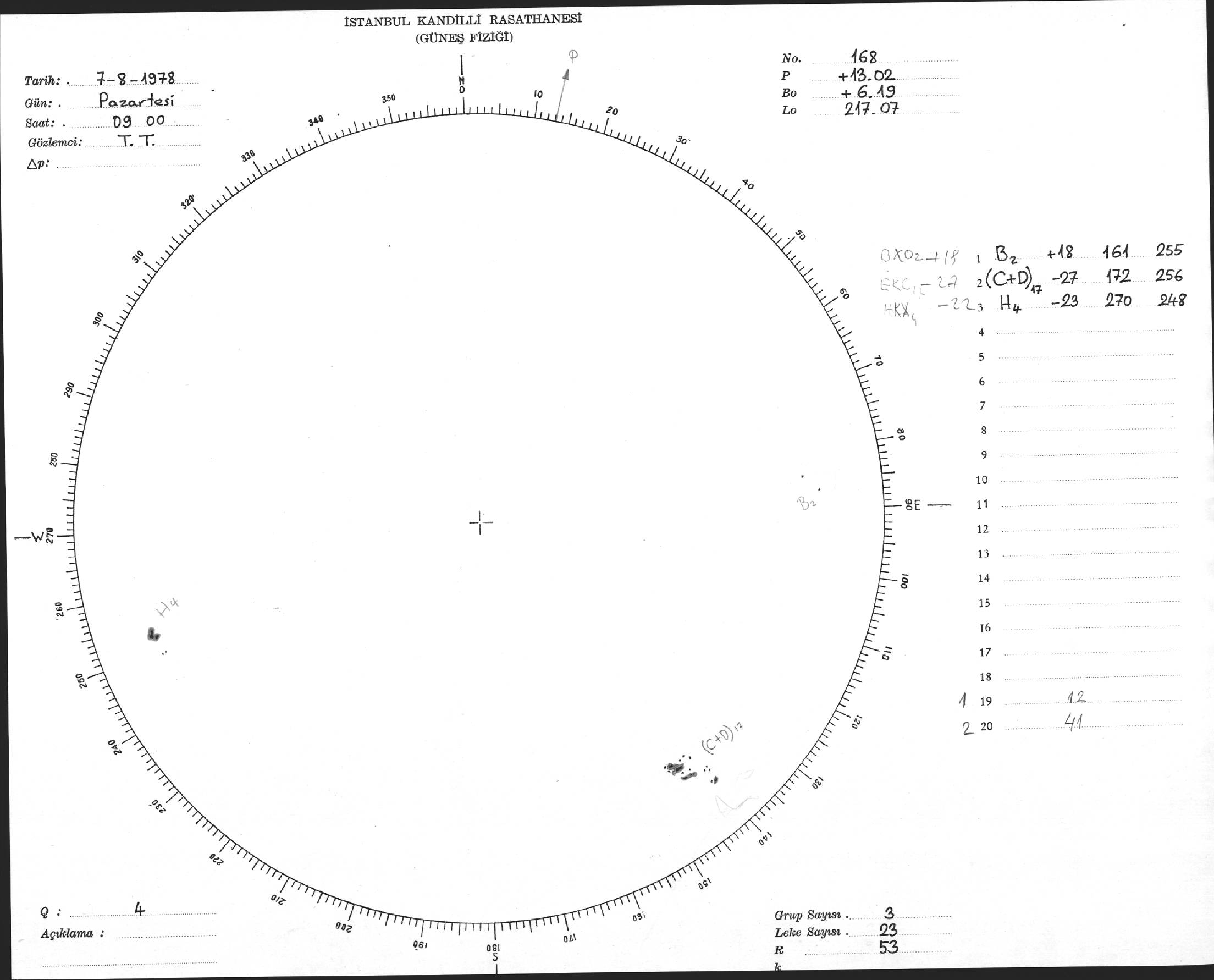 Güneş Lekesi Çizimi - 07.08.1978