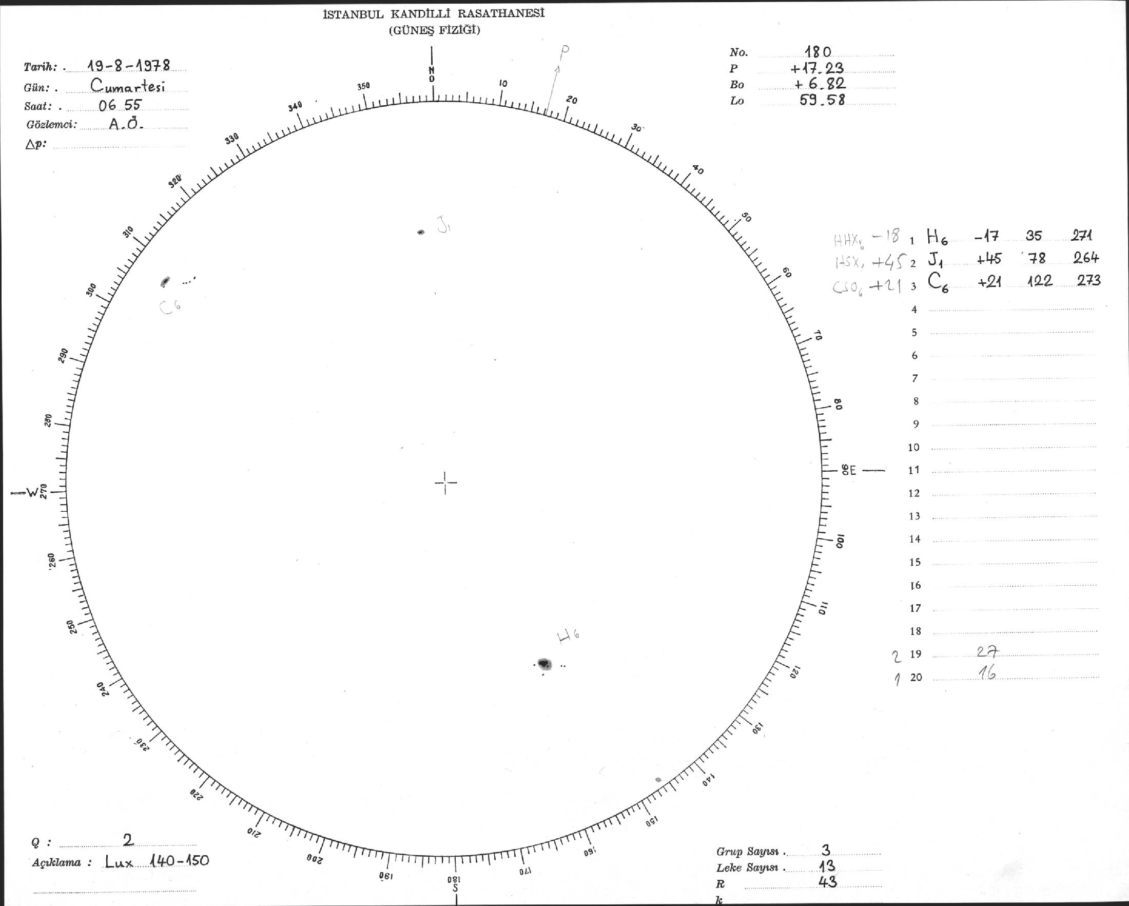 Güneş Lekesi Çizimi - 19.08.1978