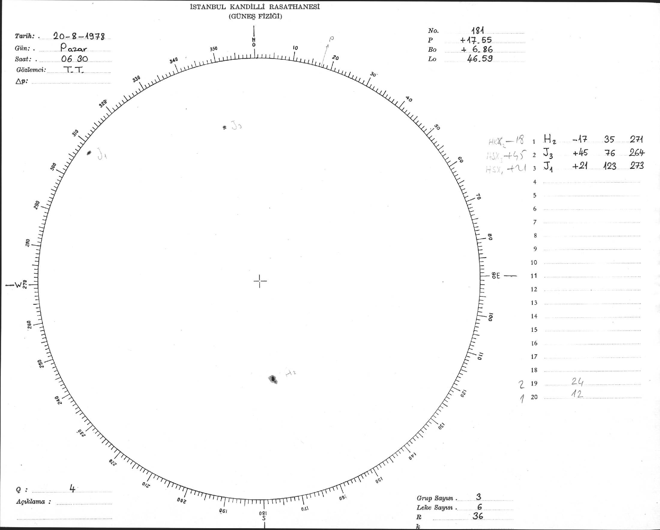 Güneş Lekesi Çizimi - 20.08.1978