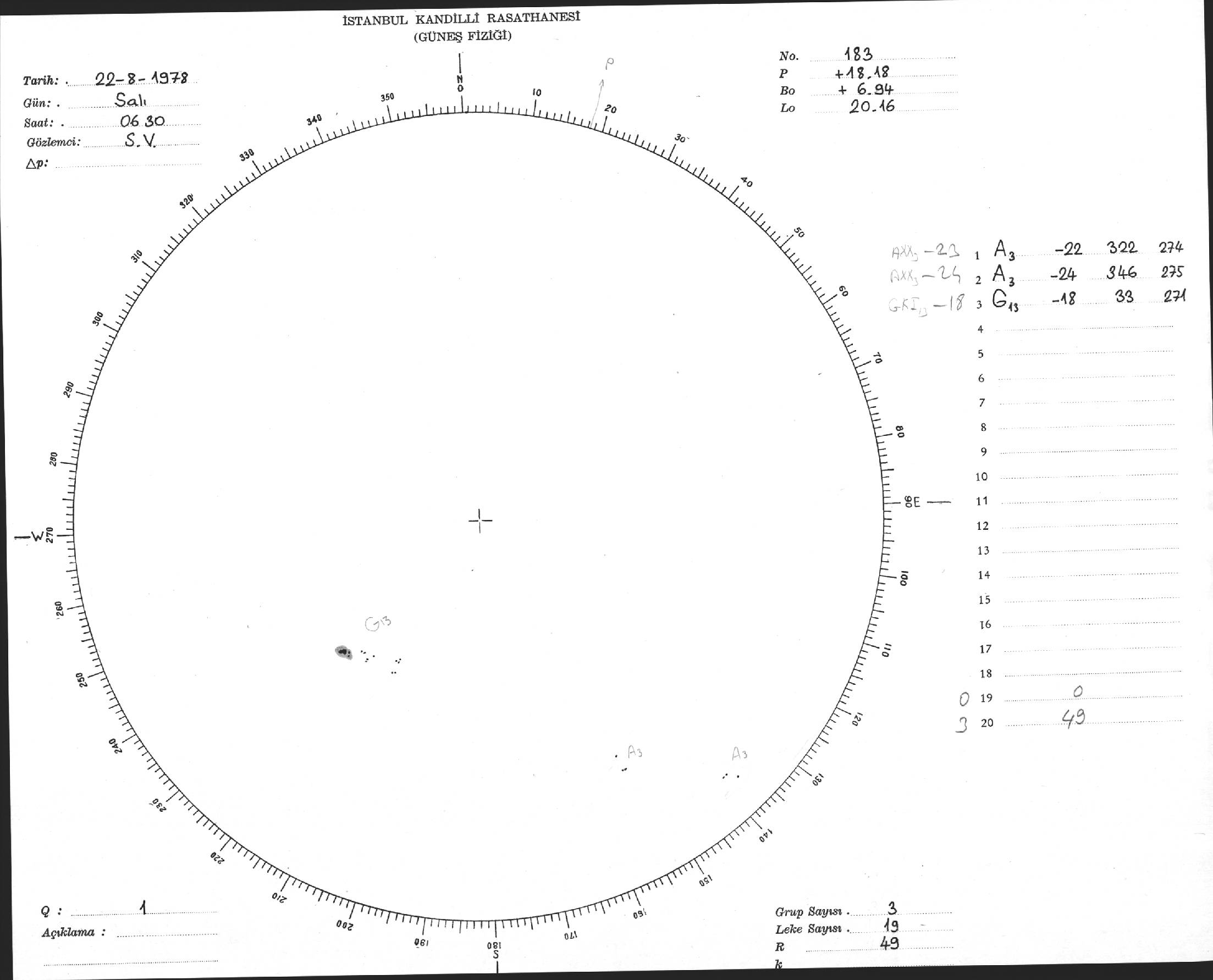 Güneş Lekesi Çizimi - 22.08.1978
