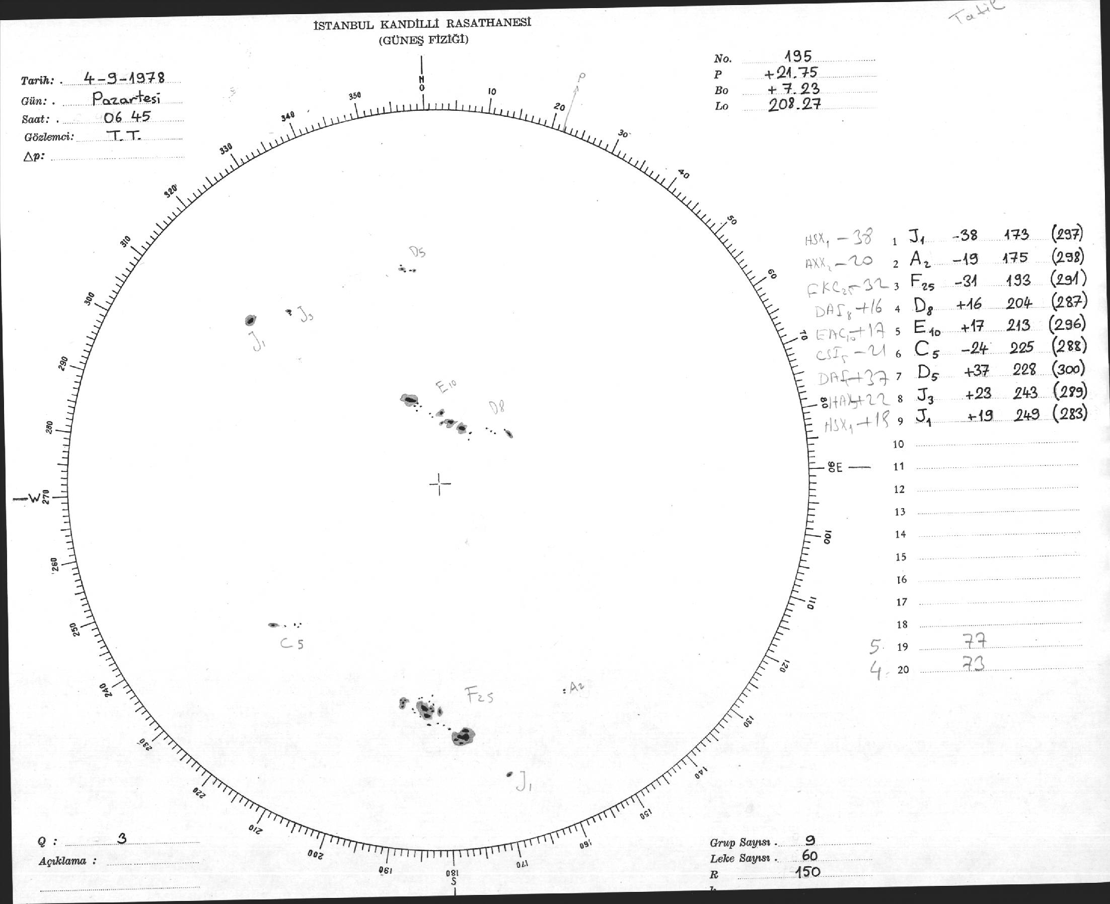 Güneş Lekesi Çizimi - 04.09.1978
