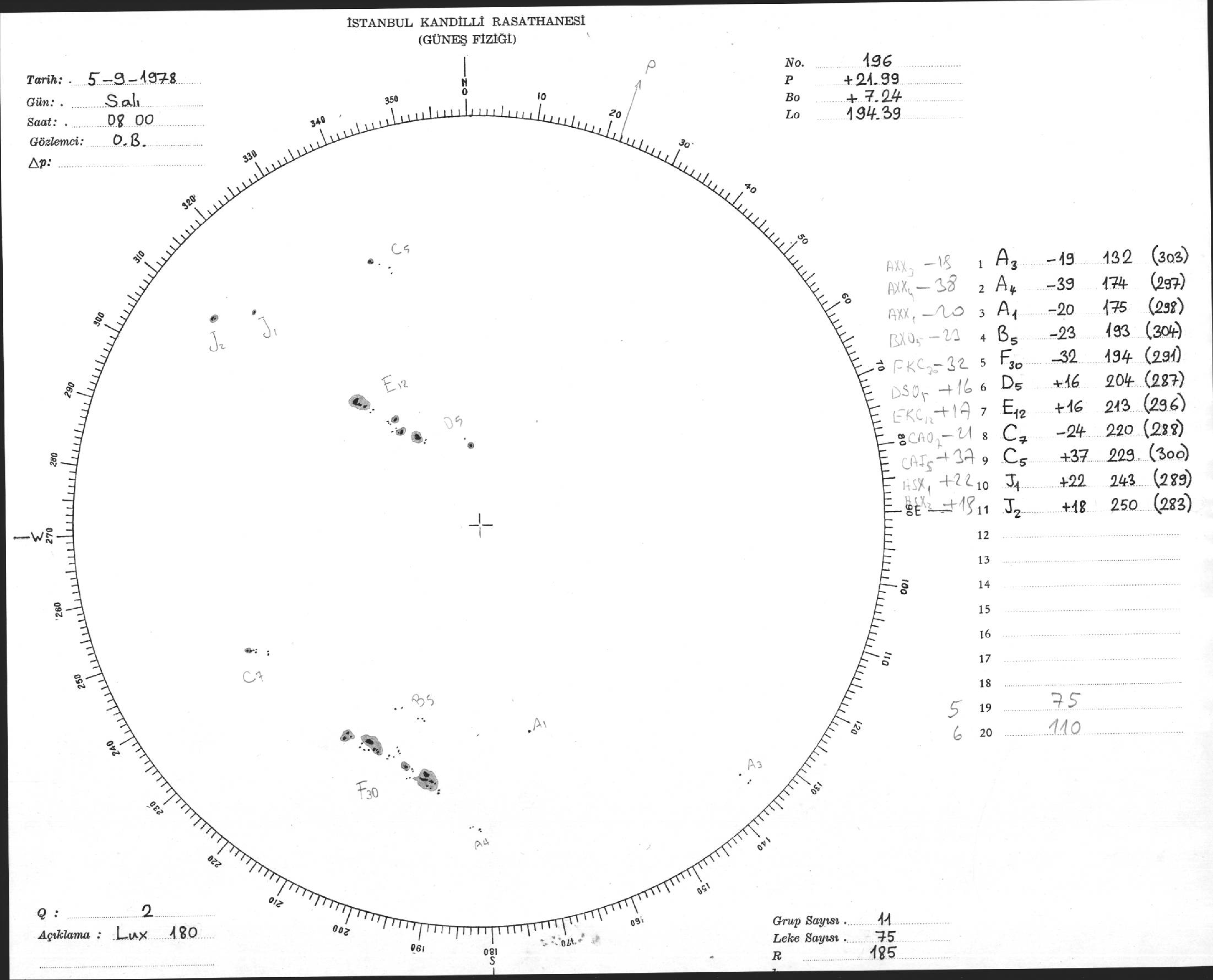 Güneş Lekesi Çizimi - 05.09.1978