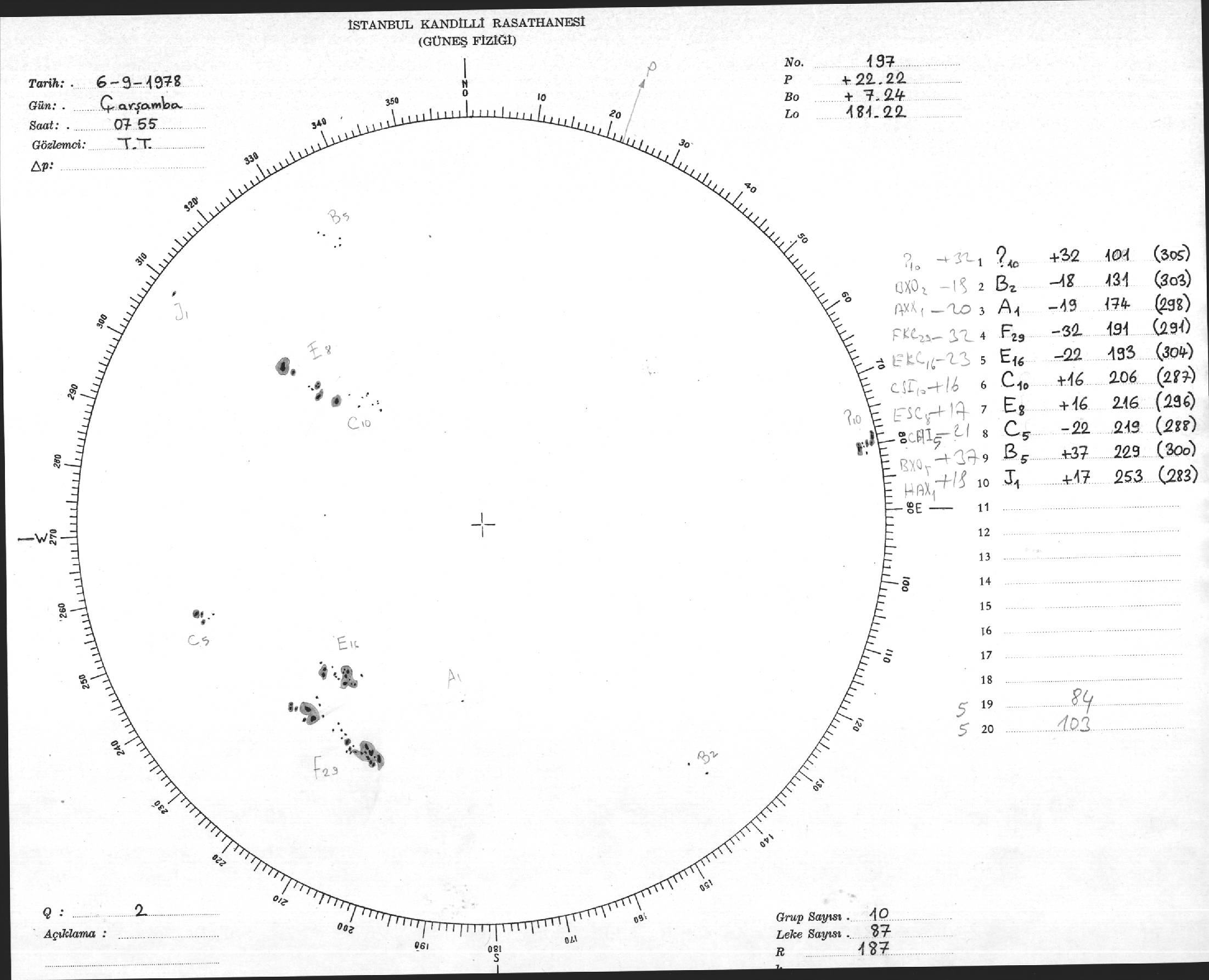 Güneş Lekesi Çizimi - 06.09.1978