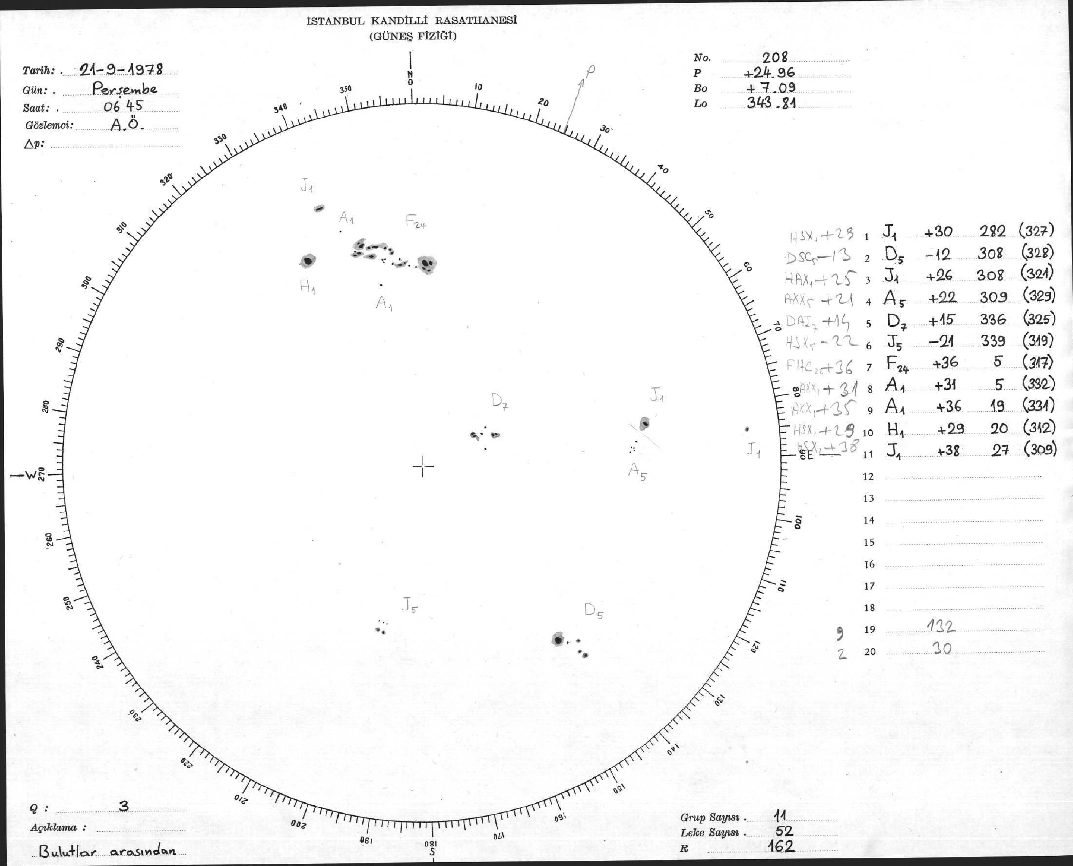 Güneş Lekesi Çizimi - 21.09.1978