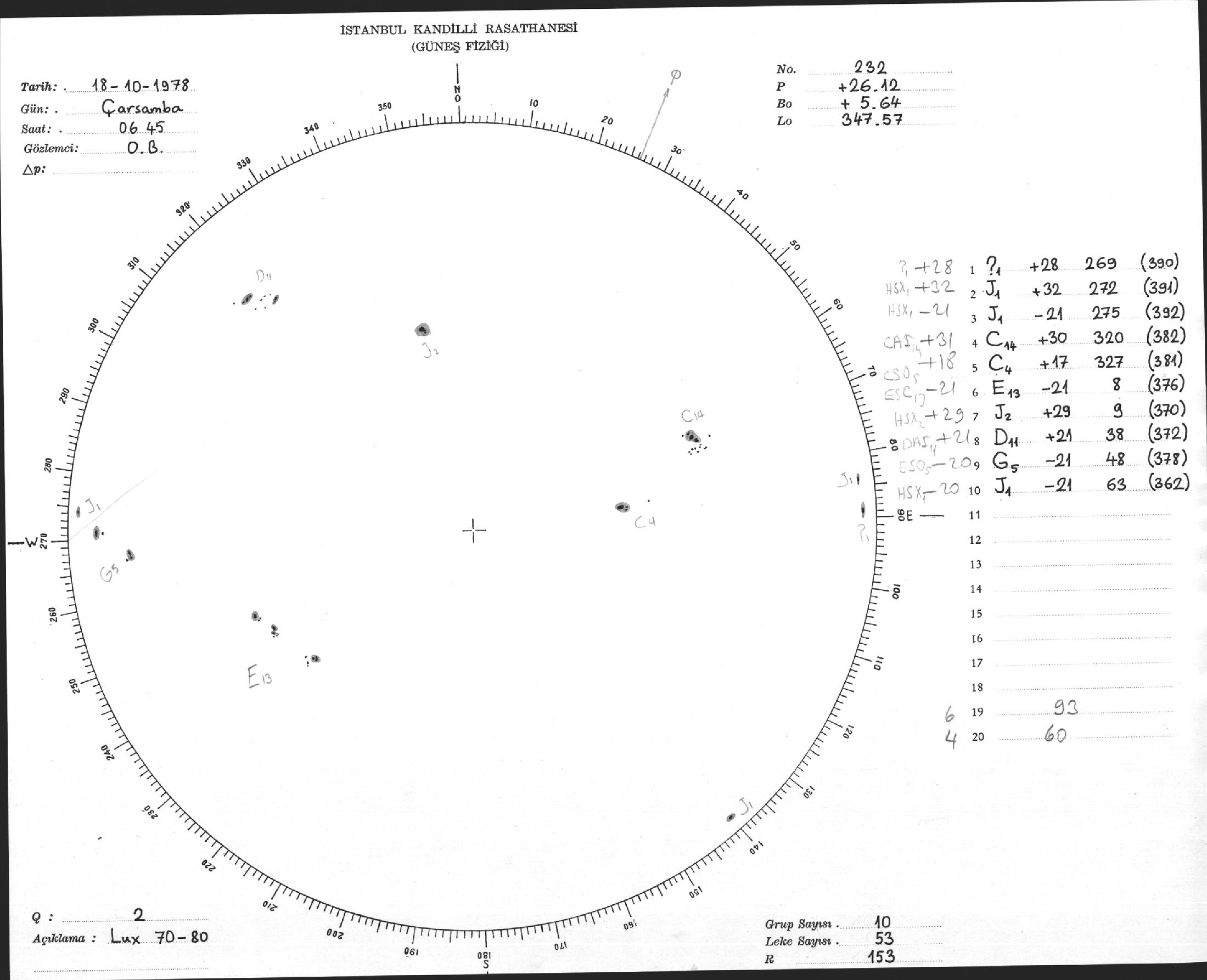 Güneş Lekesi Çizimi - 18.10.1978