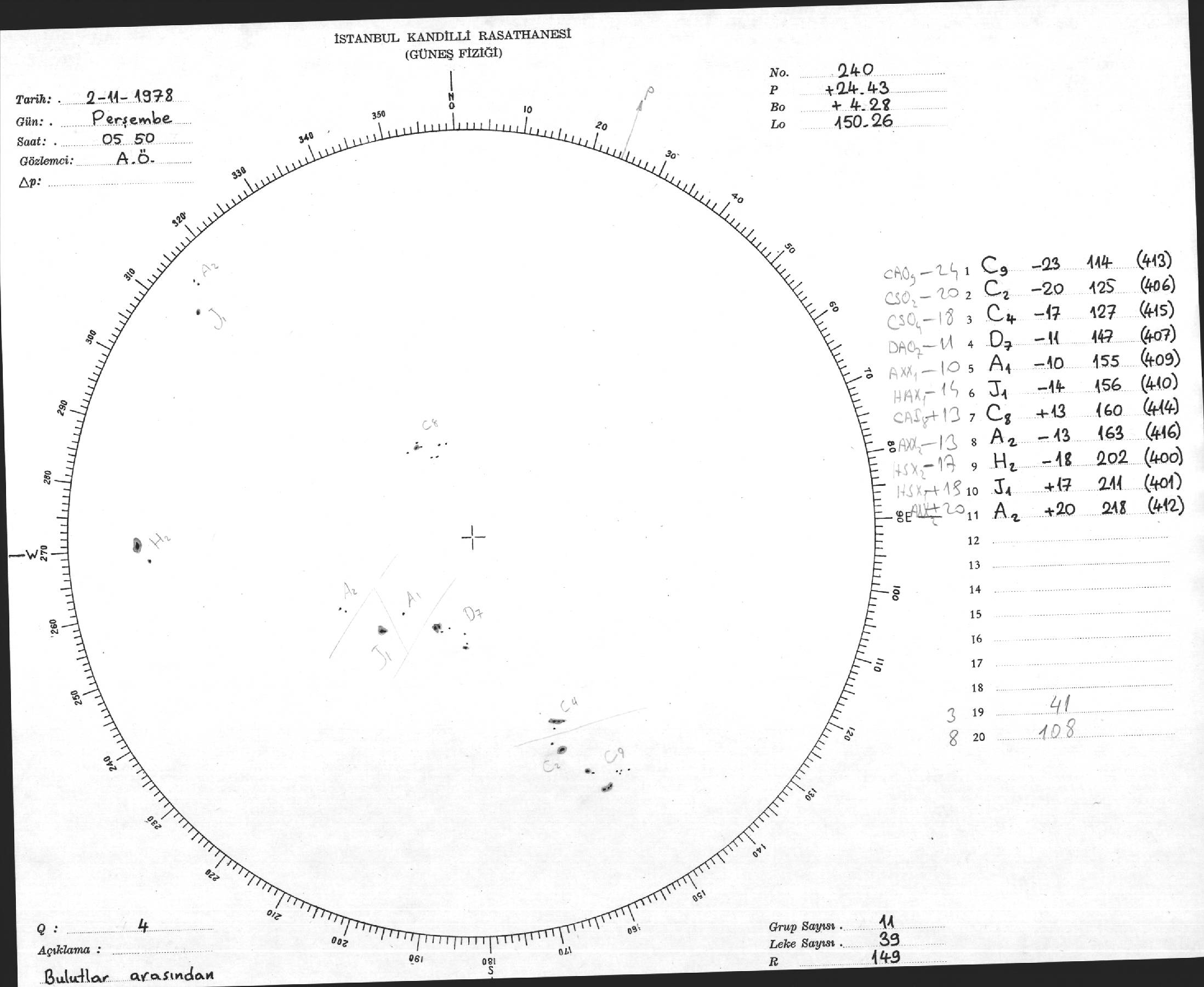 Güneş Lekesi Çizimi - 02.11.1978