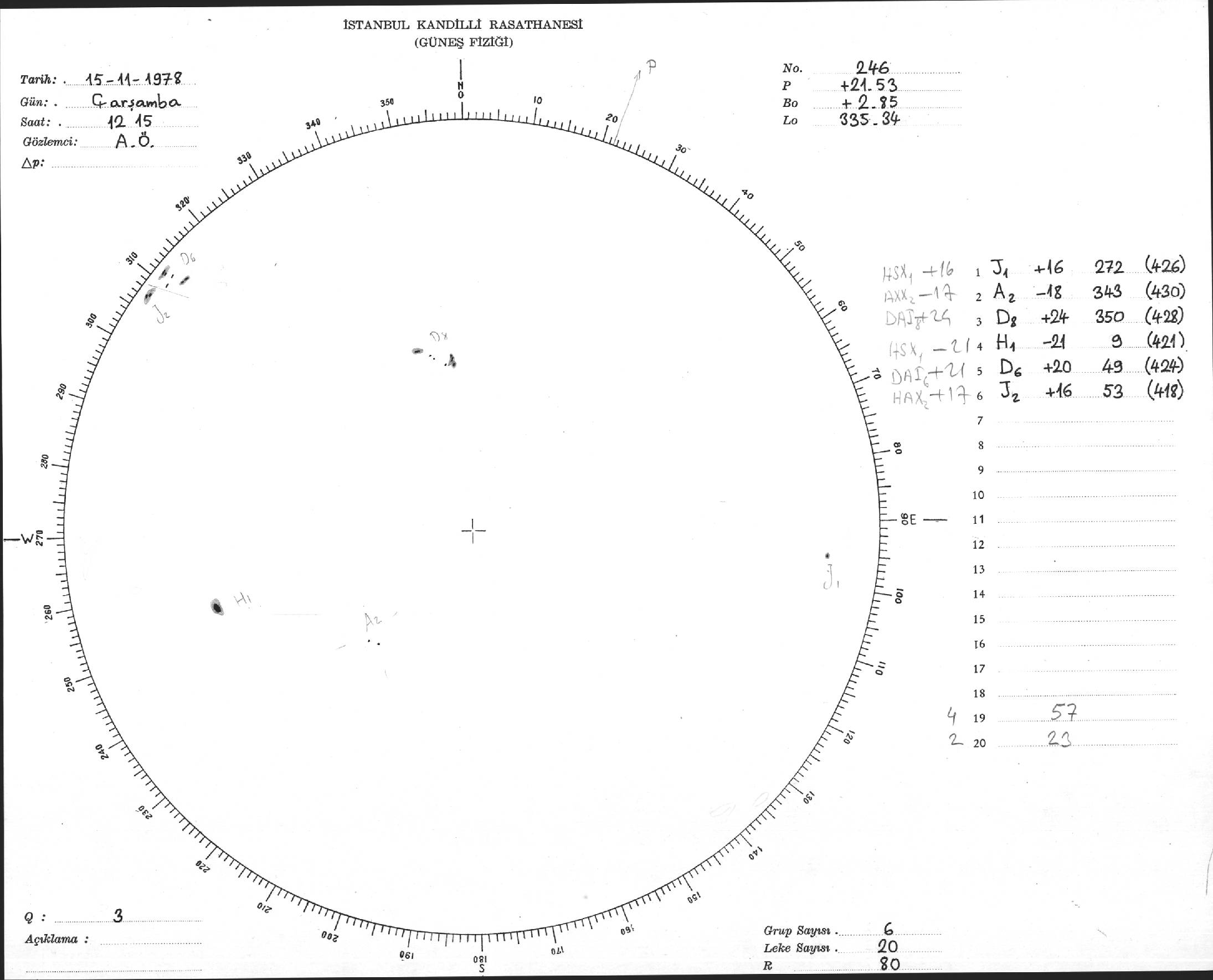 Güneş Lekesi Çizimi - 15.11.1978