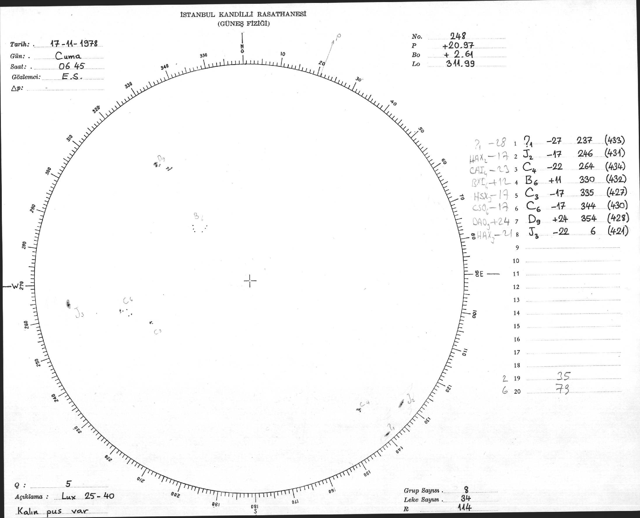 Güneş Lekesi Çizimi - 17.11.1978