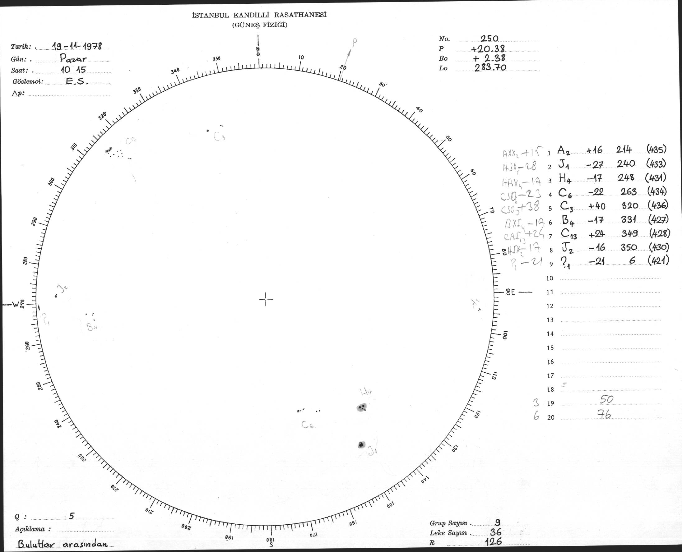 Güneş Lekesi Çizimi - 19.11.1978