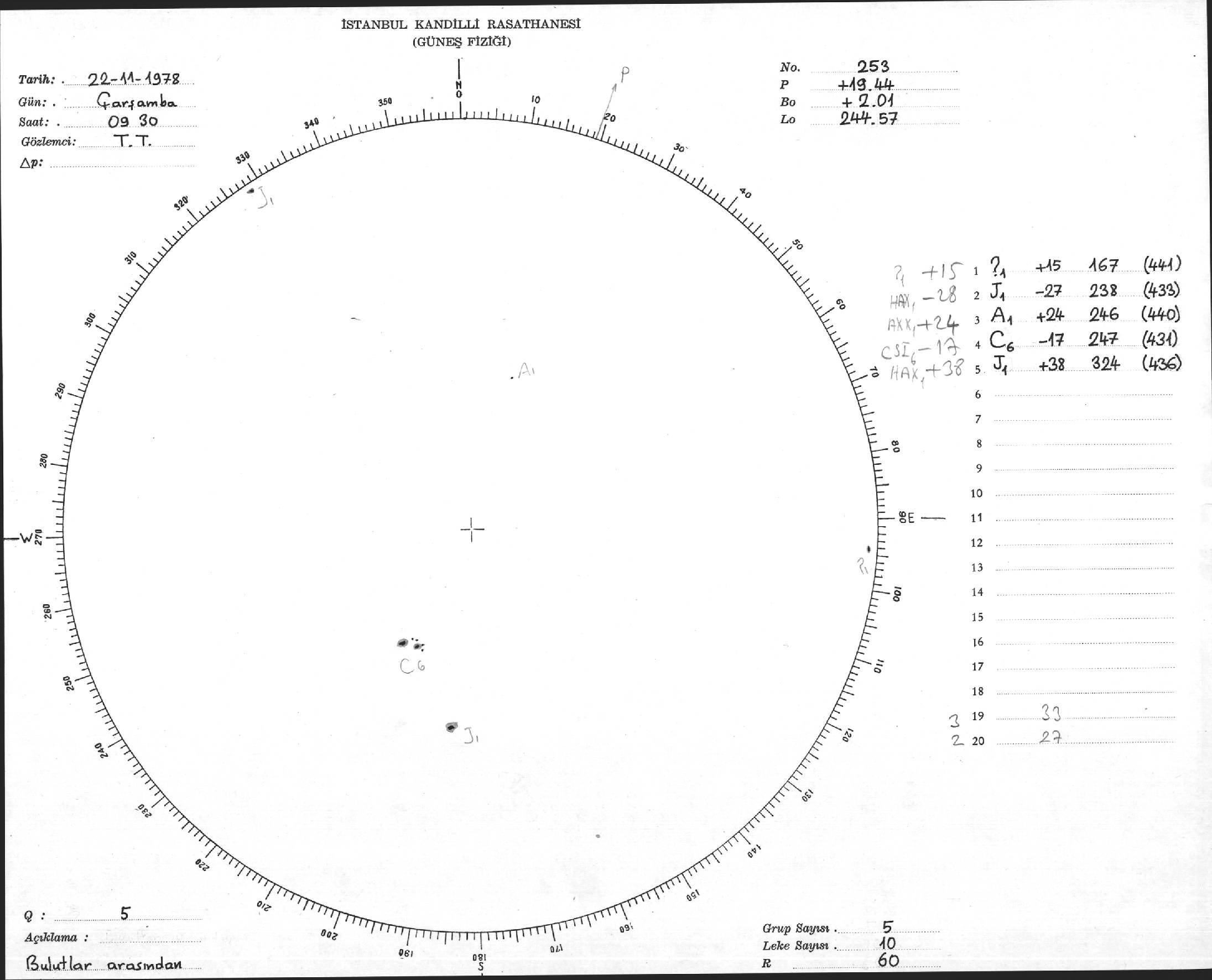 Güneş Lekesi Çizimi - 22.11.1978