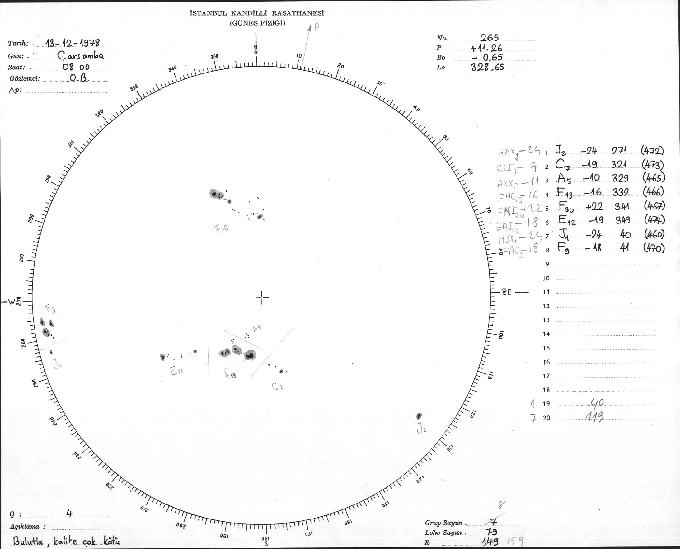 Güneş Lekesi Çizimi - 13.12.1978