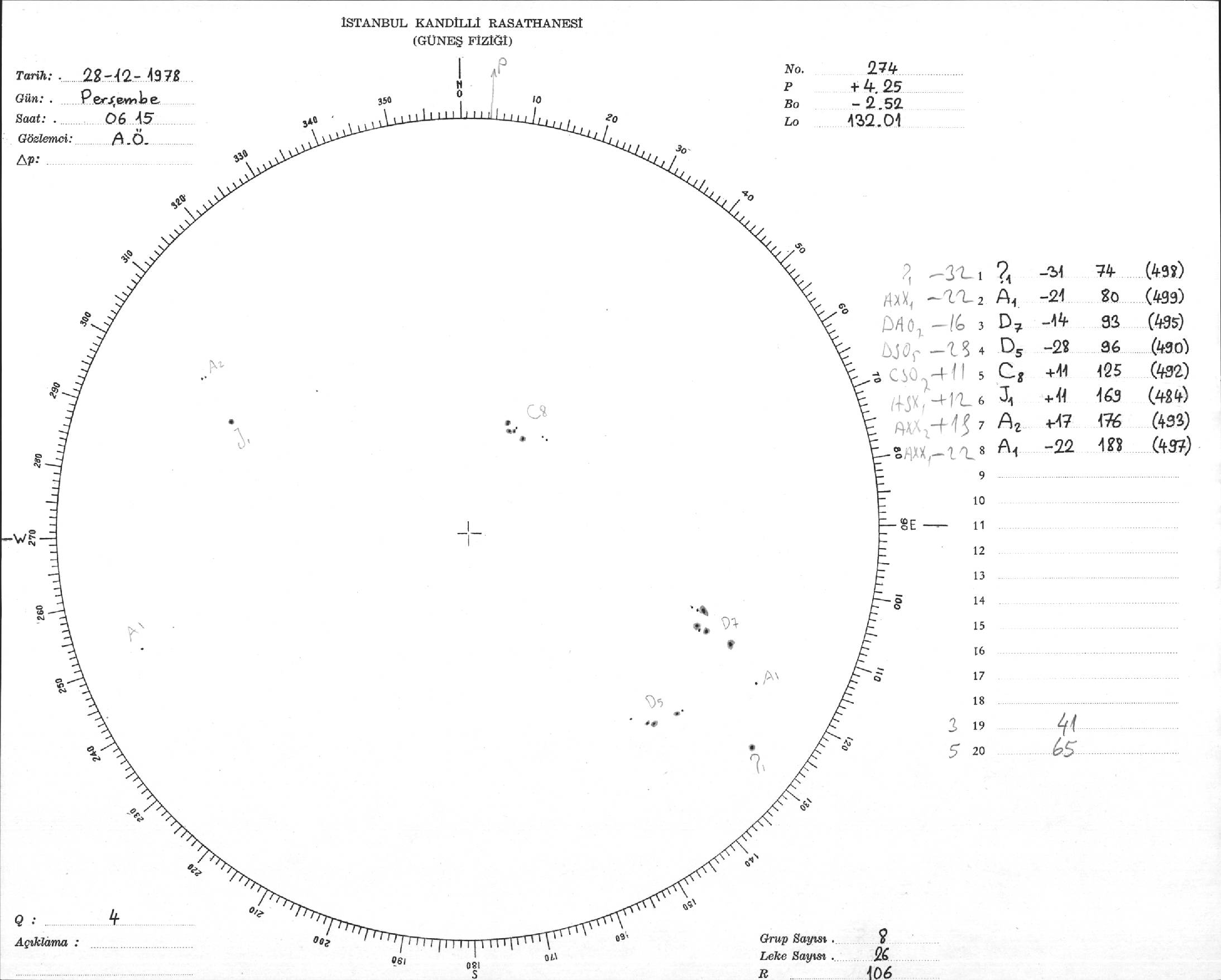 Güneş Lekesi Çizimi - 28.12.1978