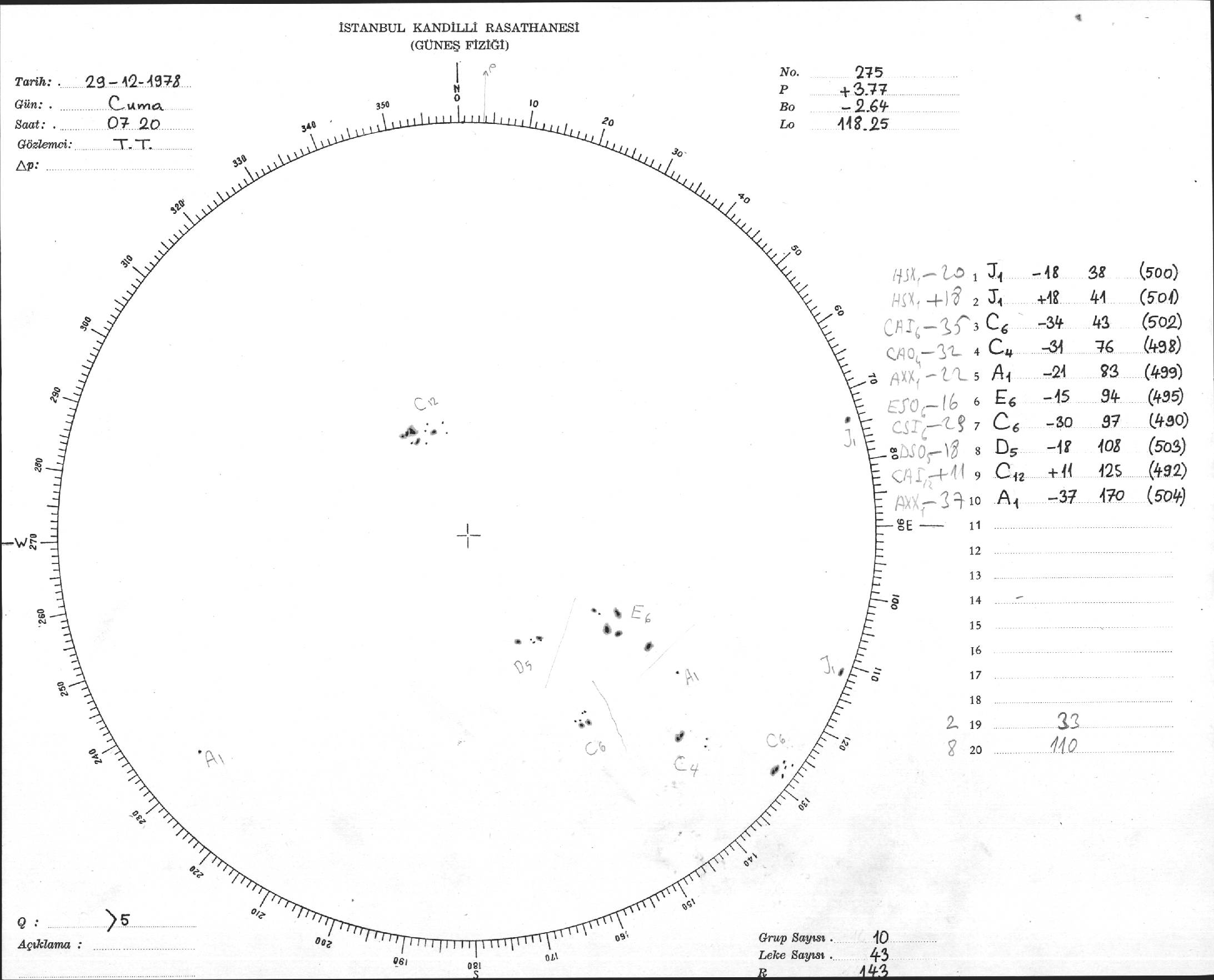 Güneş Lekesi Çizimi - 29.12.1978