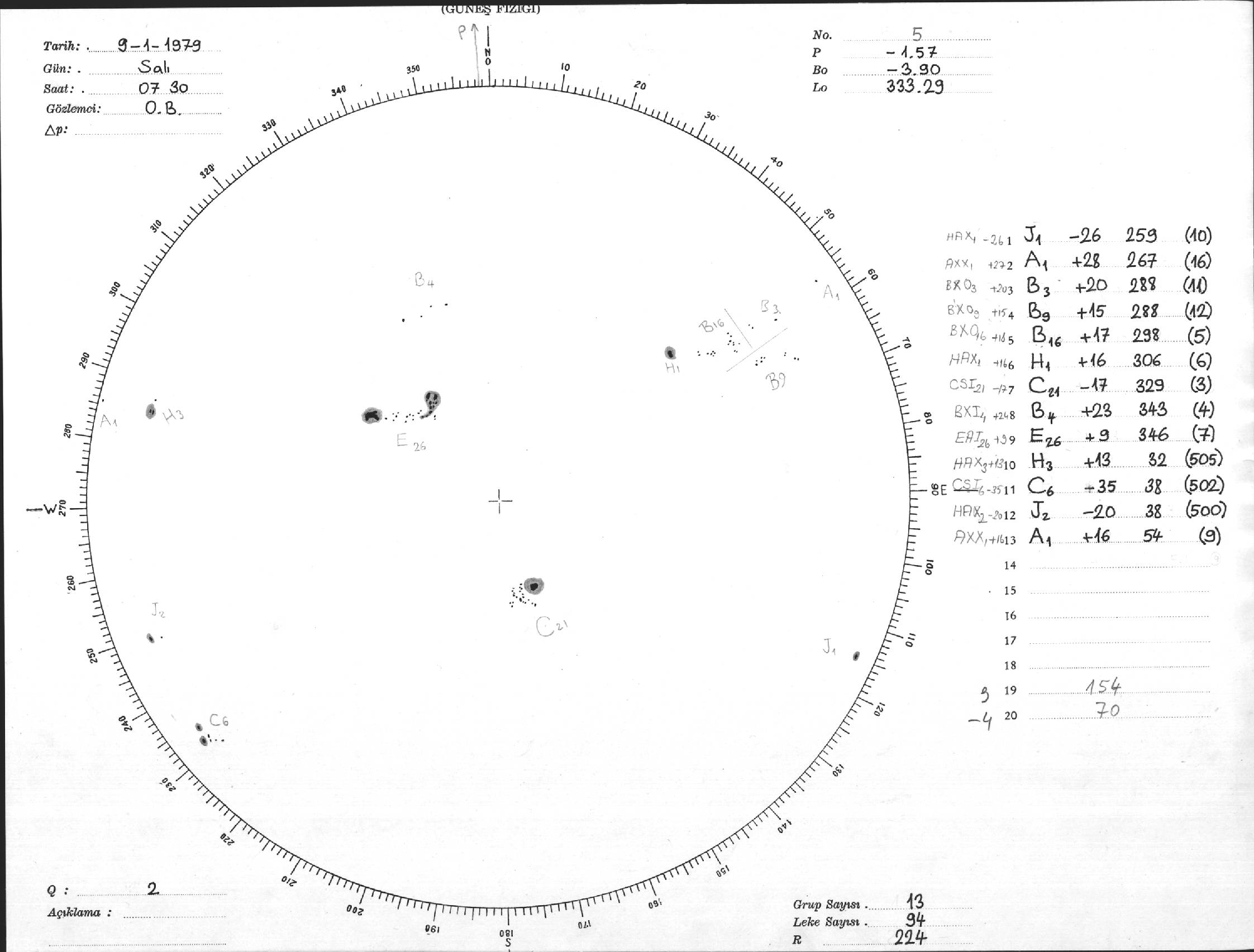 Güneş Lekesi Çizimi - 09.01.1979