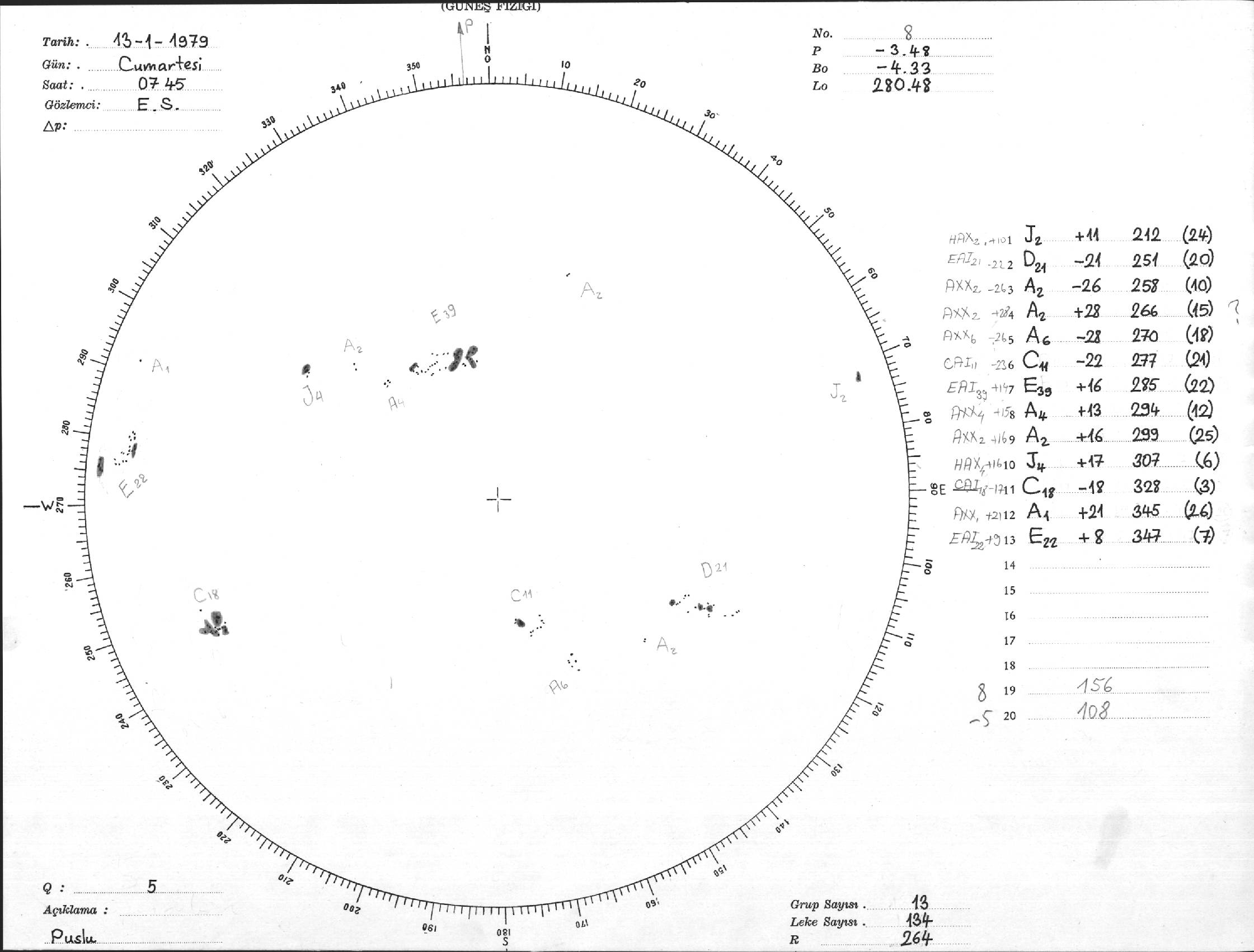 Güneş Lekesi Çizimi - 13.01.1979