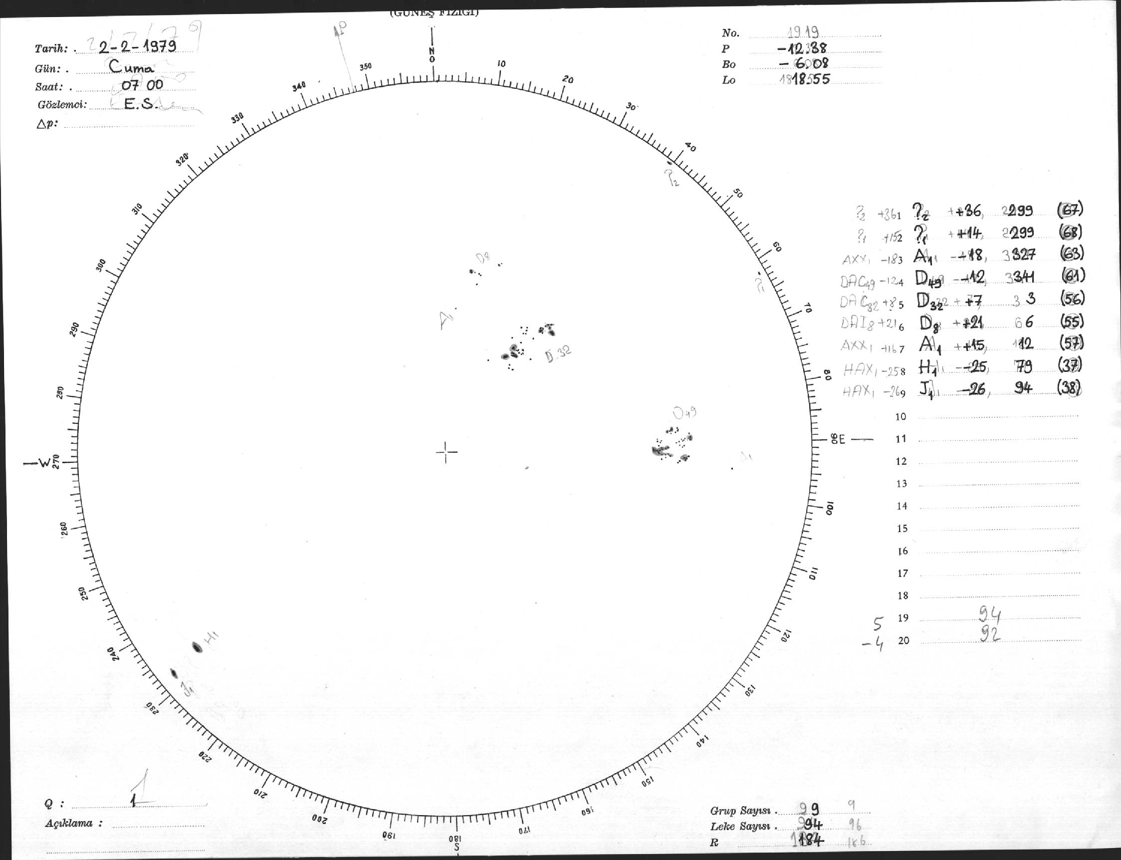 Güneş Lekesi Çizimi - 02.02.1979