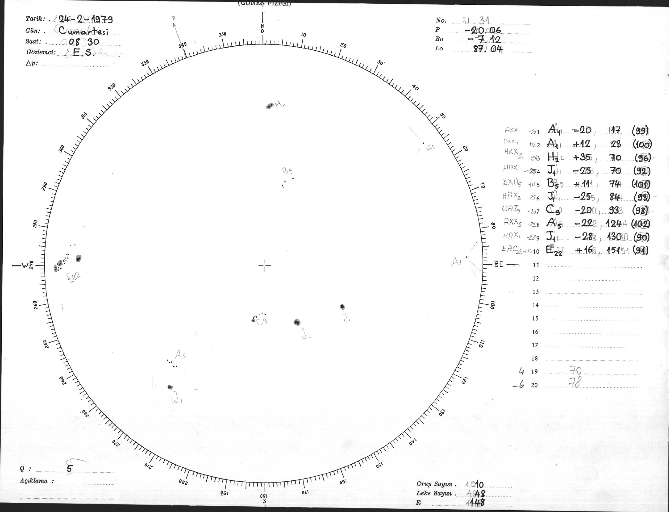 Güneş Lekesi Çizimi - 24.02.1979