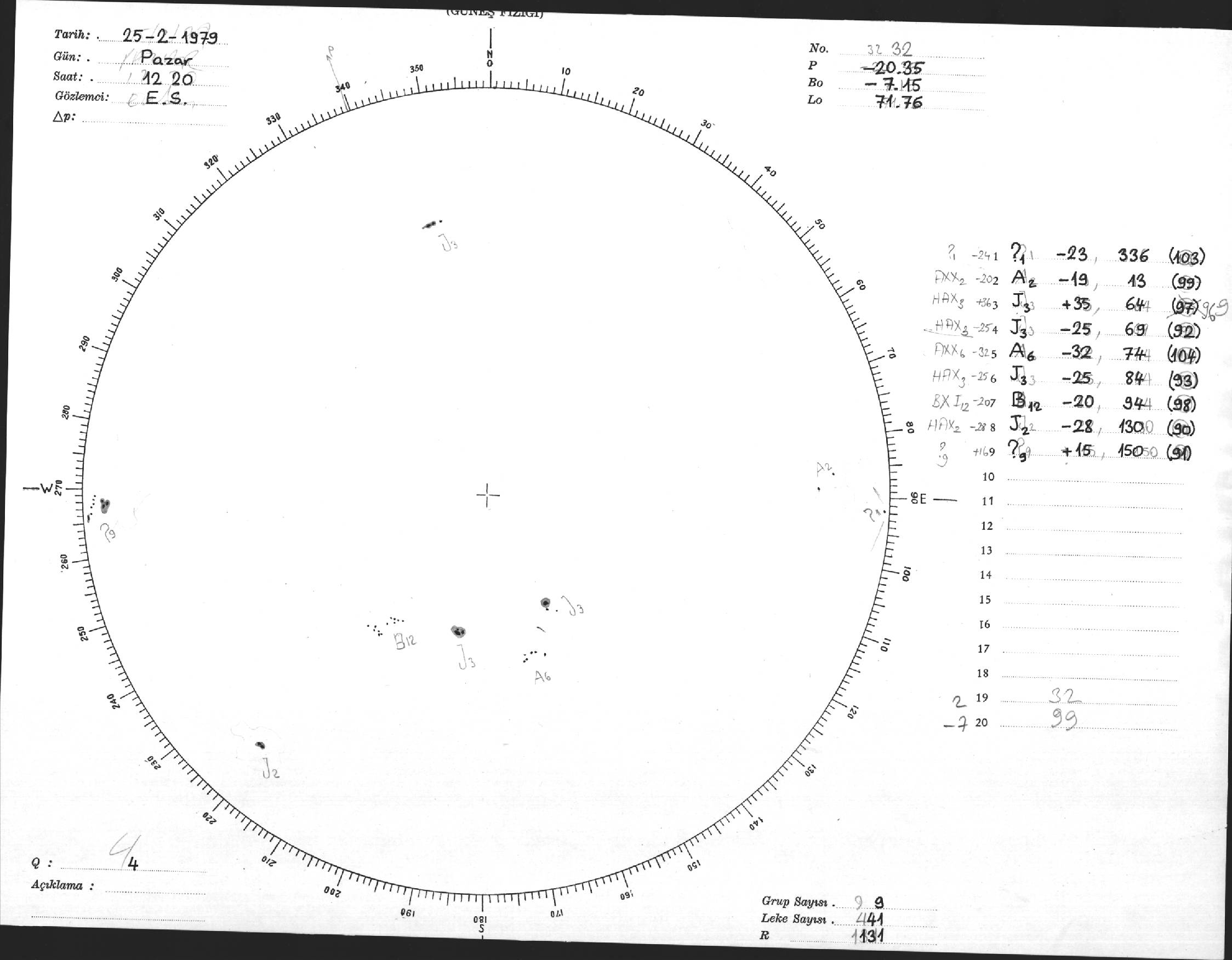 Güneş Lekesi Çizimi - 25.02.1979