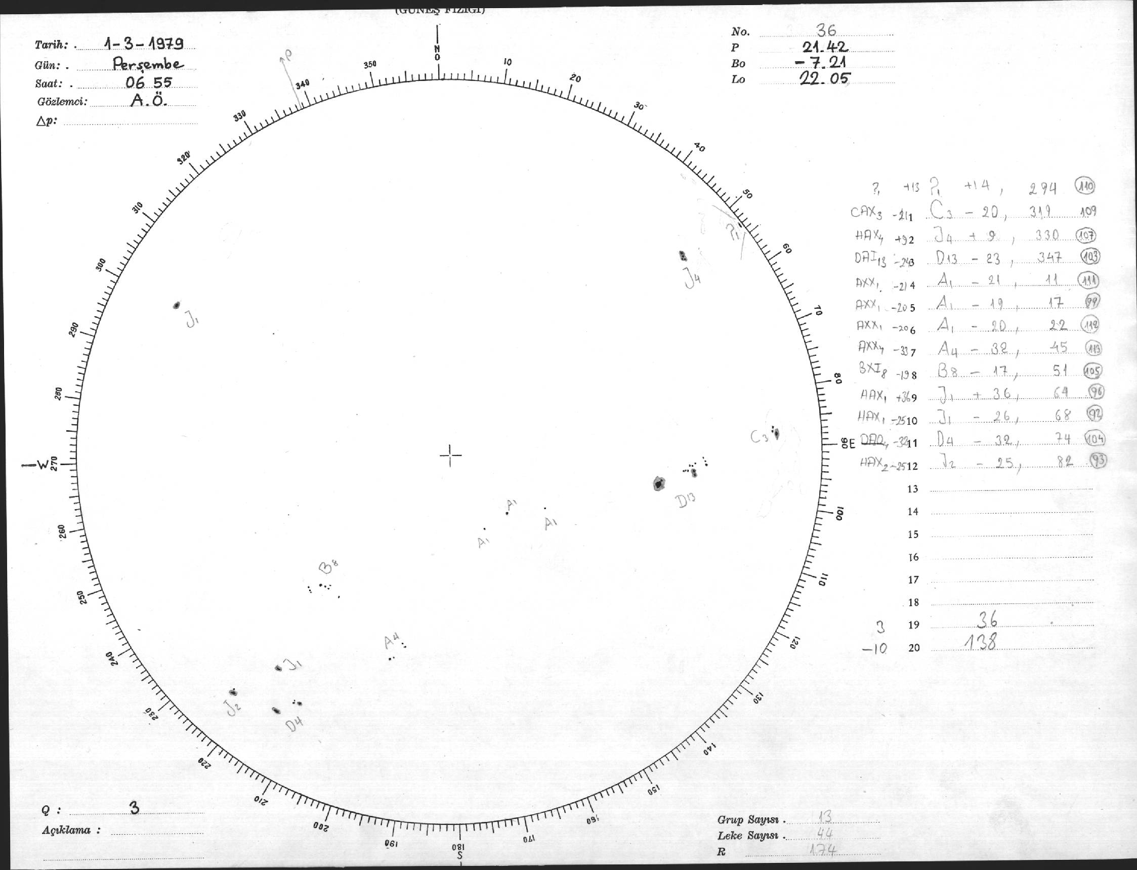 Güneş Lekesi Çizimi - 01.03.1979