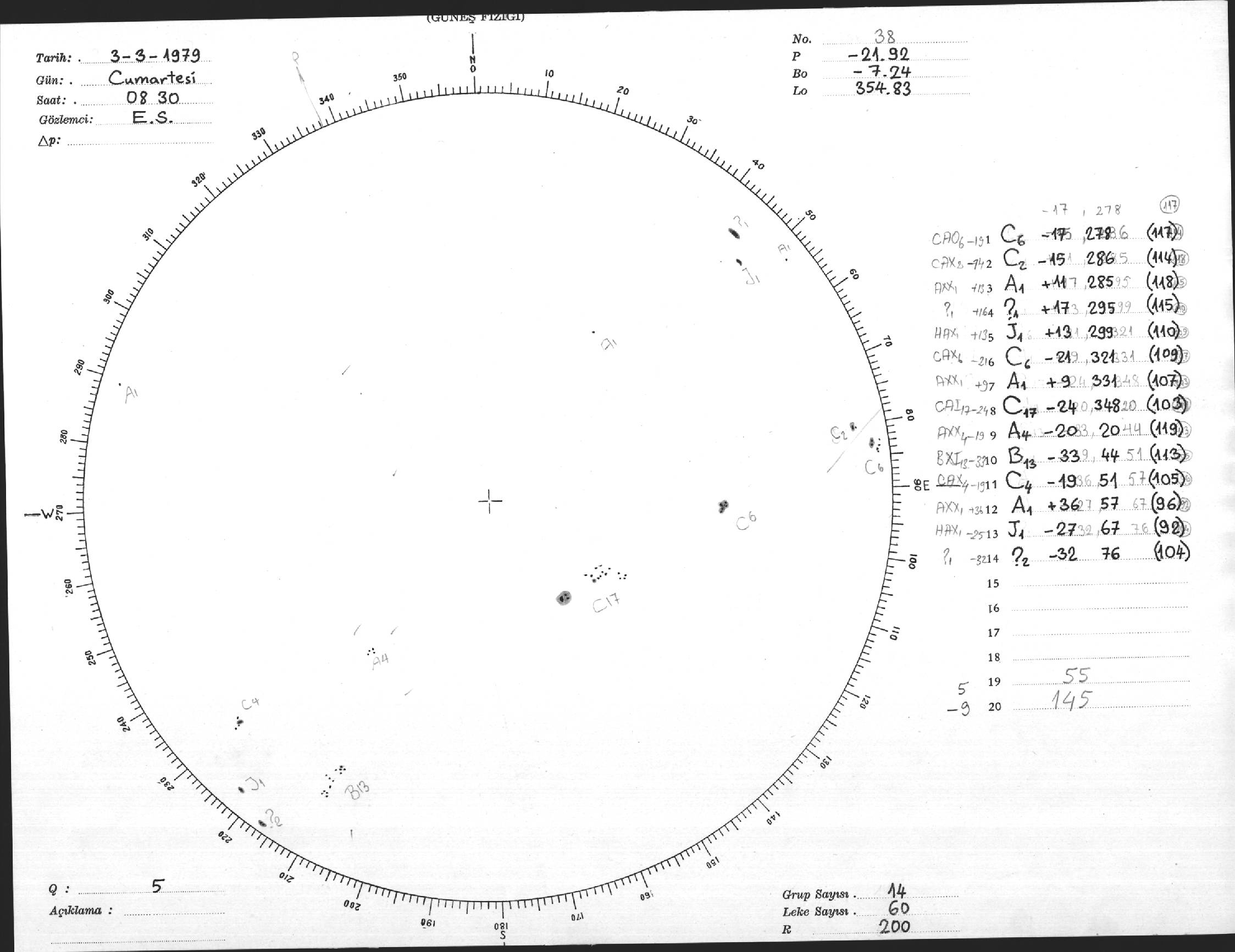 Güneş Lekesi Çizimi - 03.03.1979