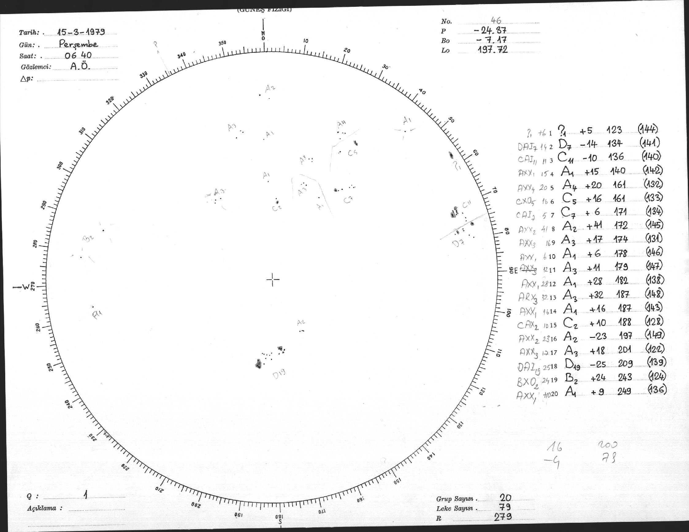 Güneş Lekesi Çizimi - 15.03.1979