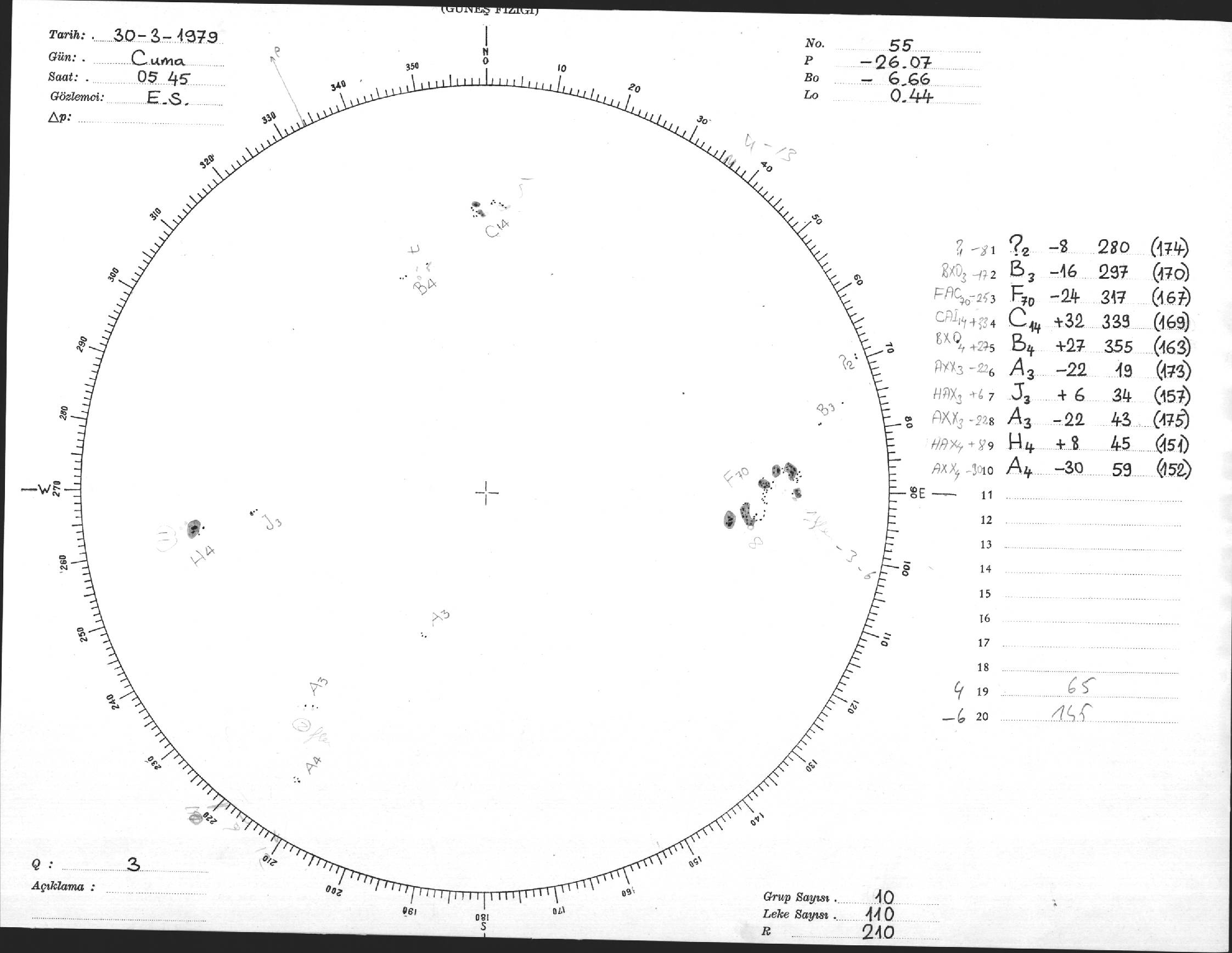 Güneş Lekesi Çizimi - 30.03.1979