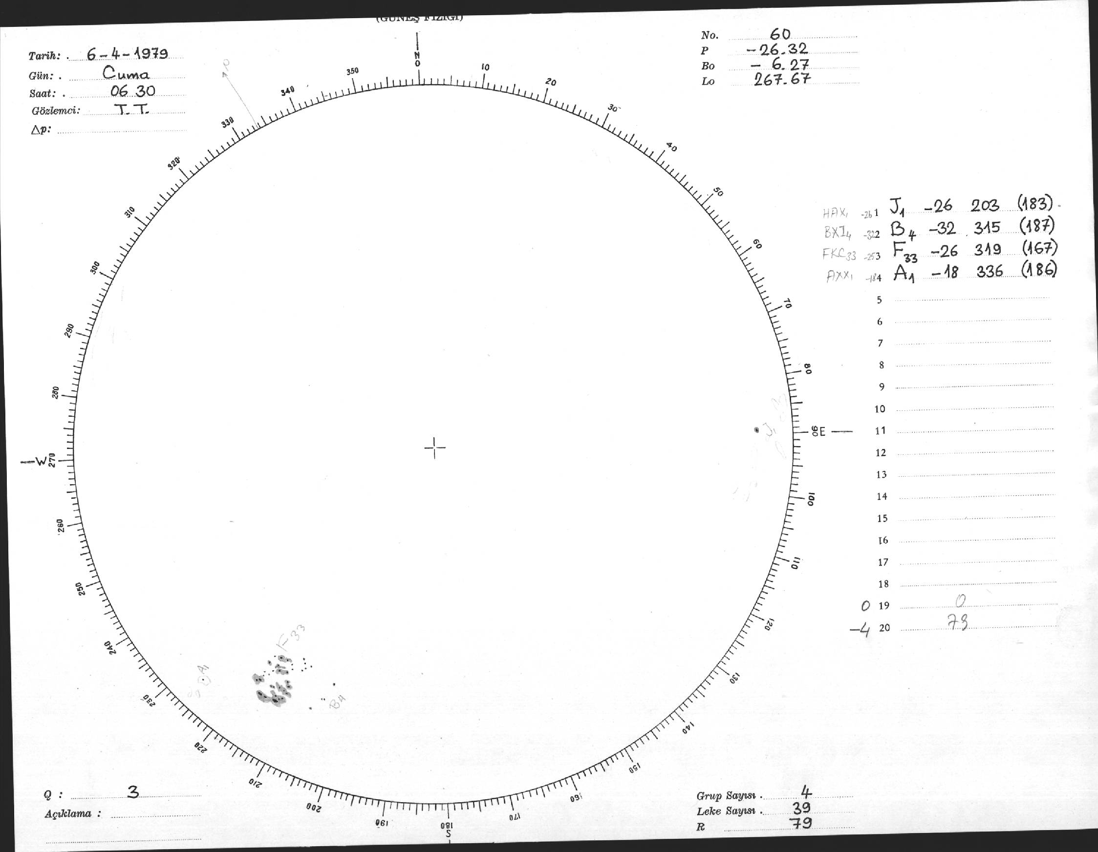 Güneş Lekesi Çizimi - 06.04.1979