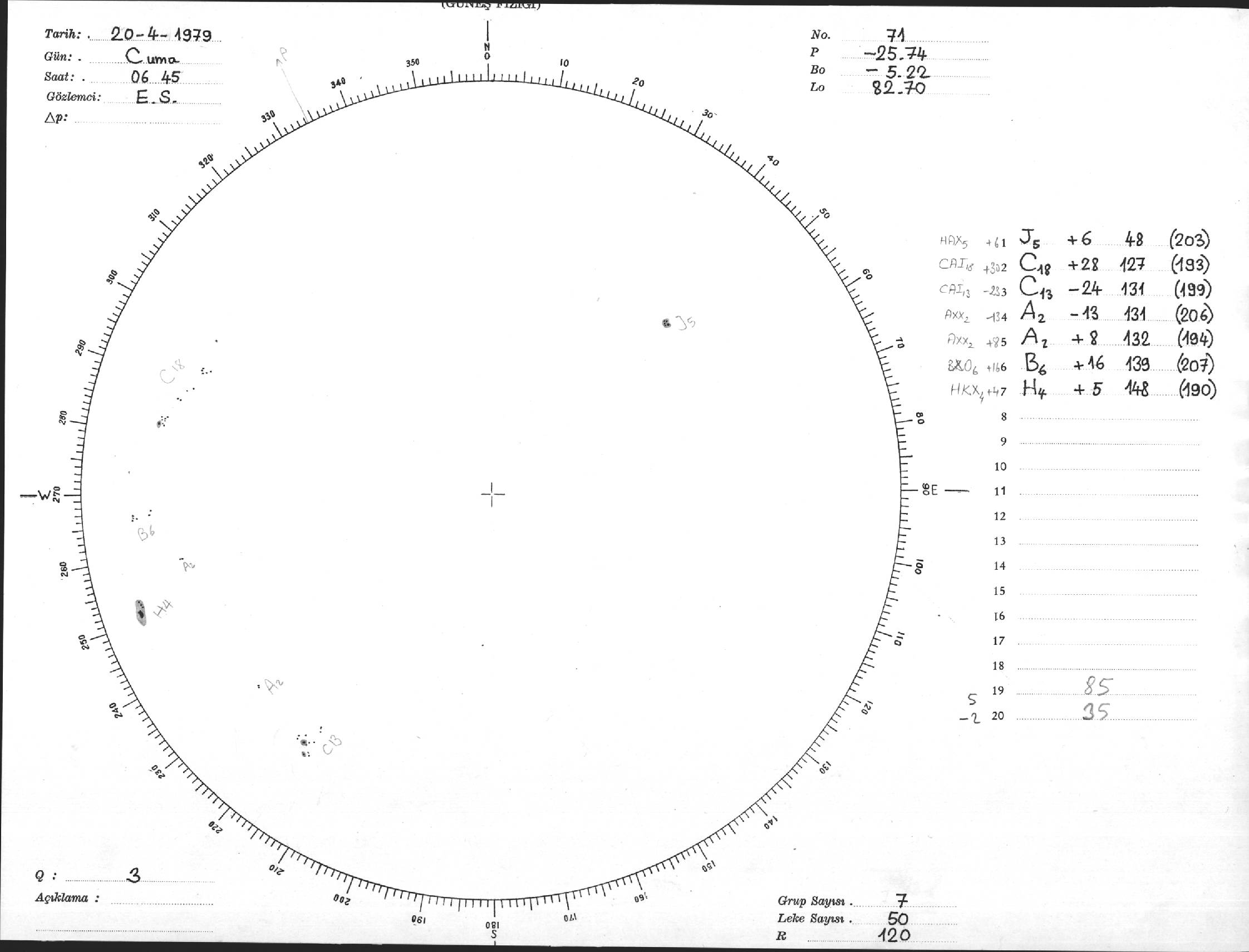Güneş Lekesi Çizimi - 20.04.1979