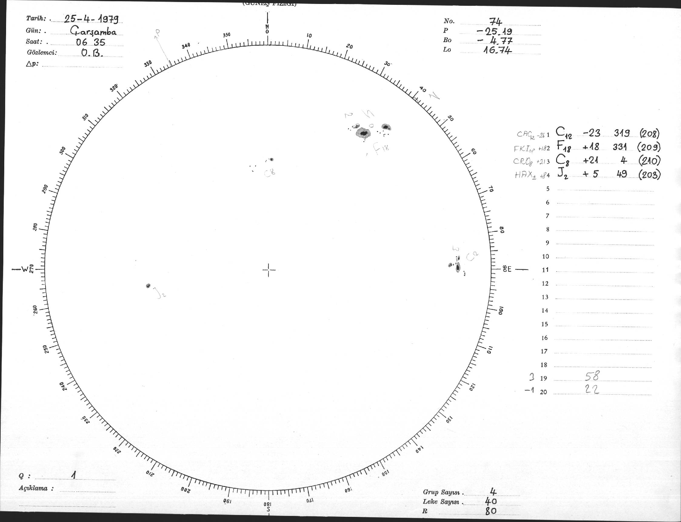 Güneş Lekesi Çizimi - 25.04.1979