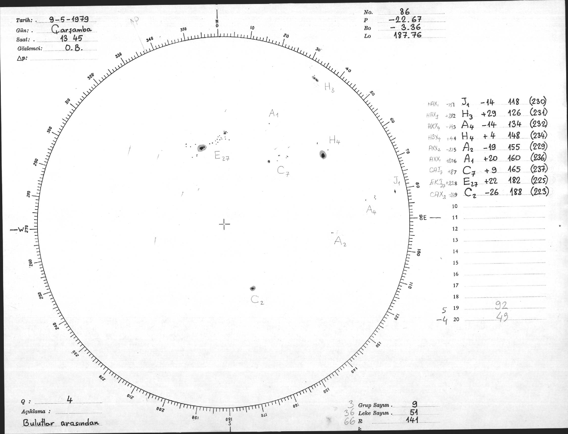 Güneş Lekesi Çizimi - 09.05.1979