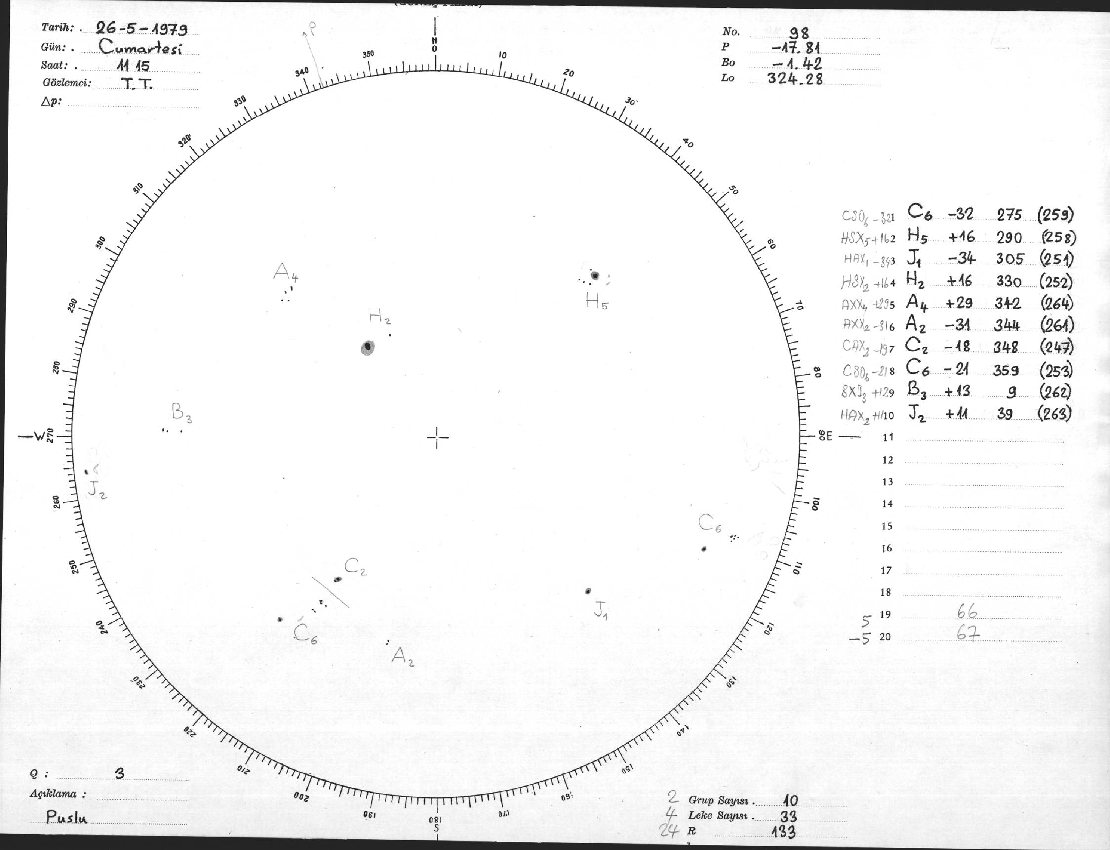 Güneş Lekesi Çizimi - 26.05.1979