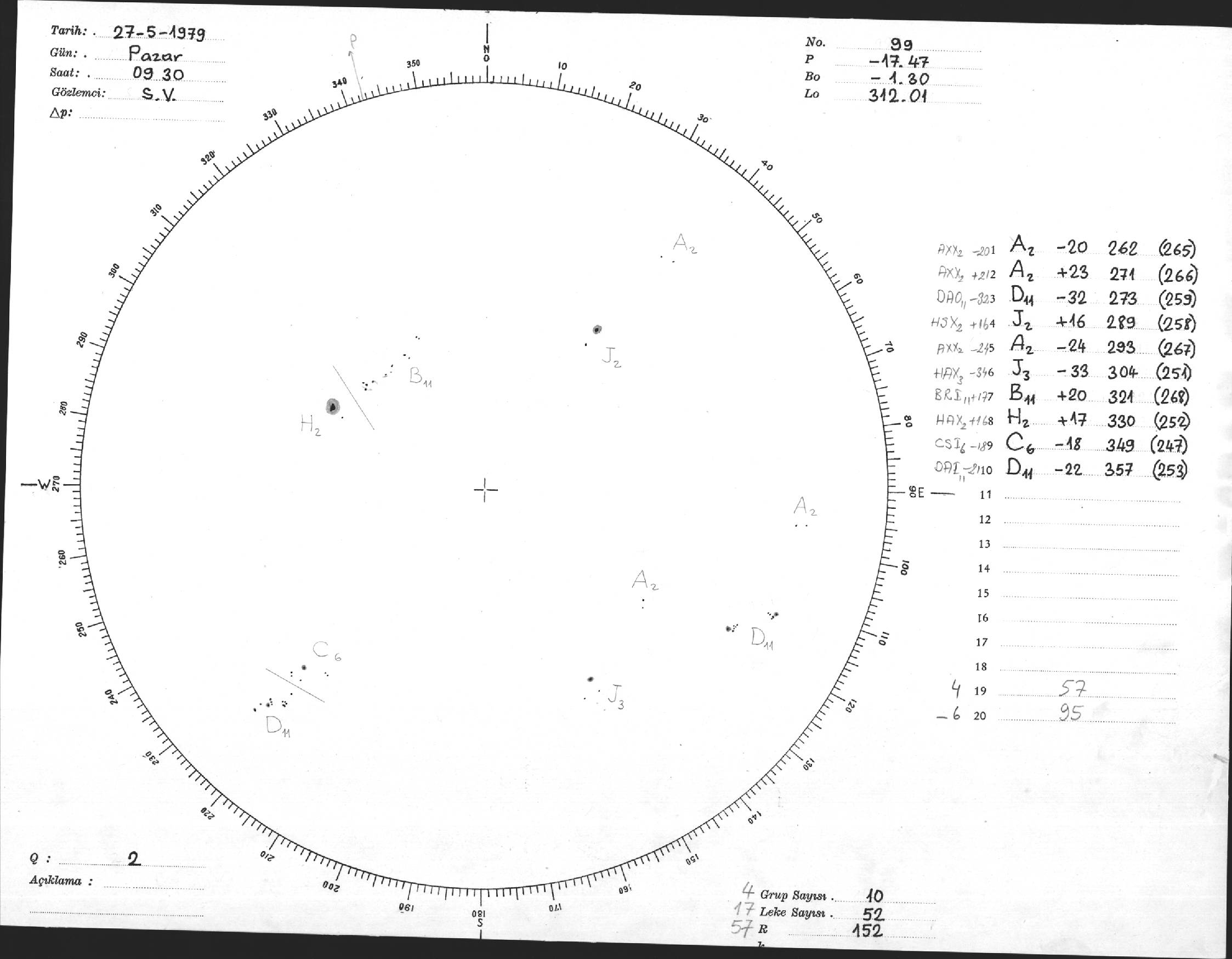 Güneş Lekesi Çizimi - 27.05.1979