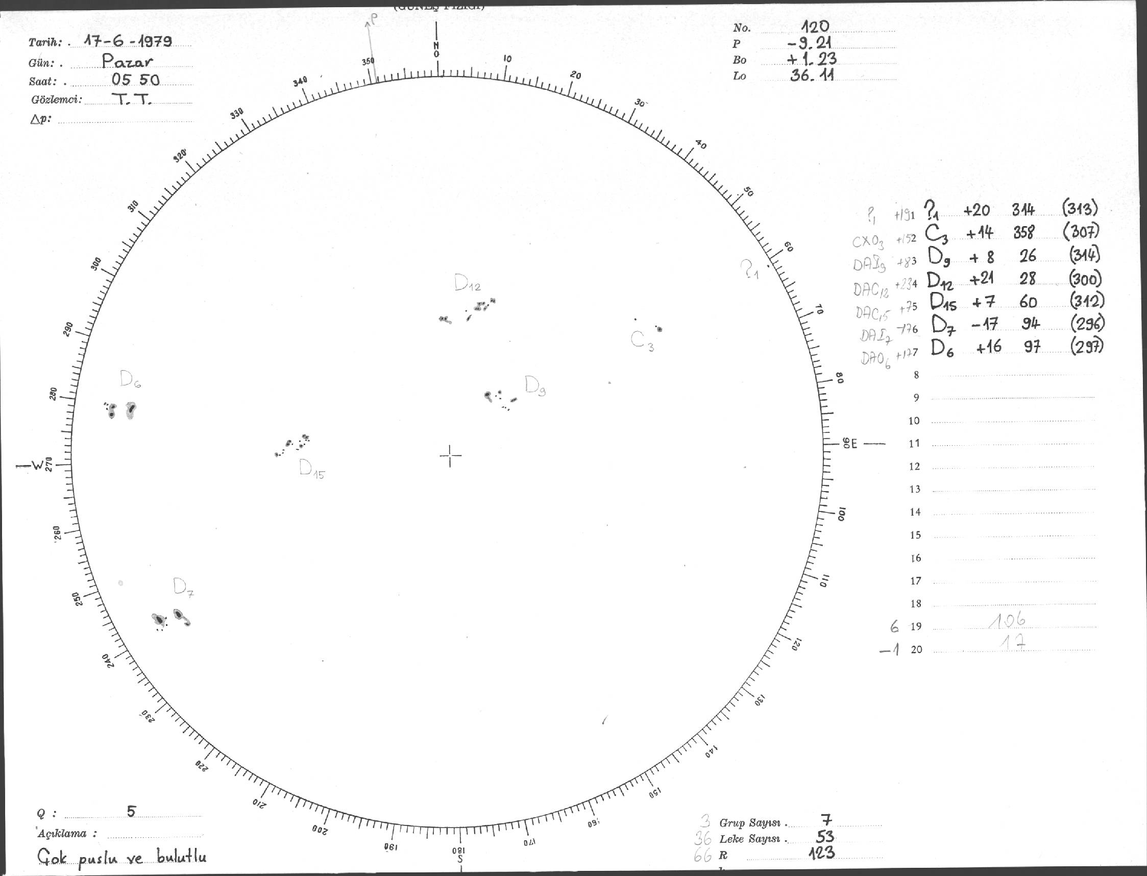 Güneş Lekesi Çizimi - 17.06.1979