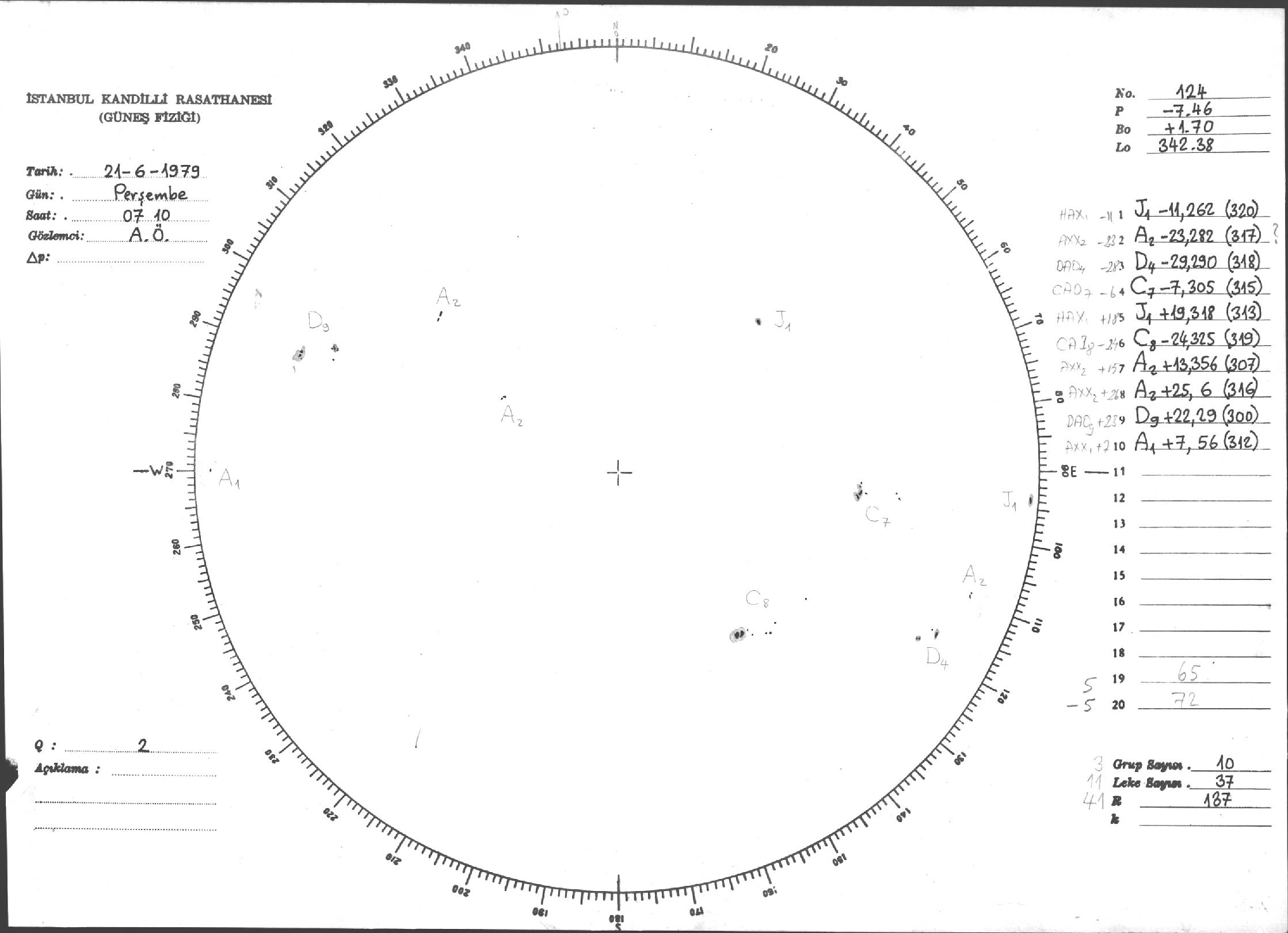 Güneş Lekesi Çizimi - 21.06.1979