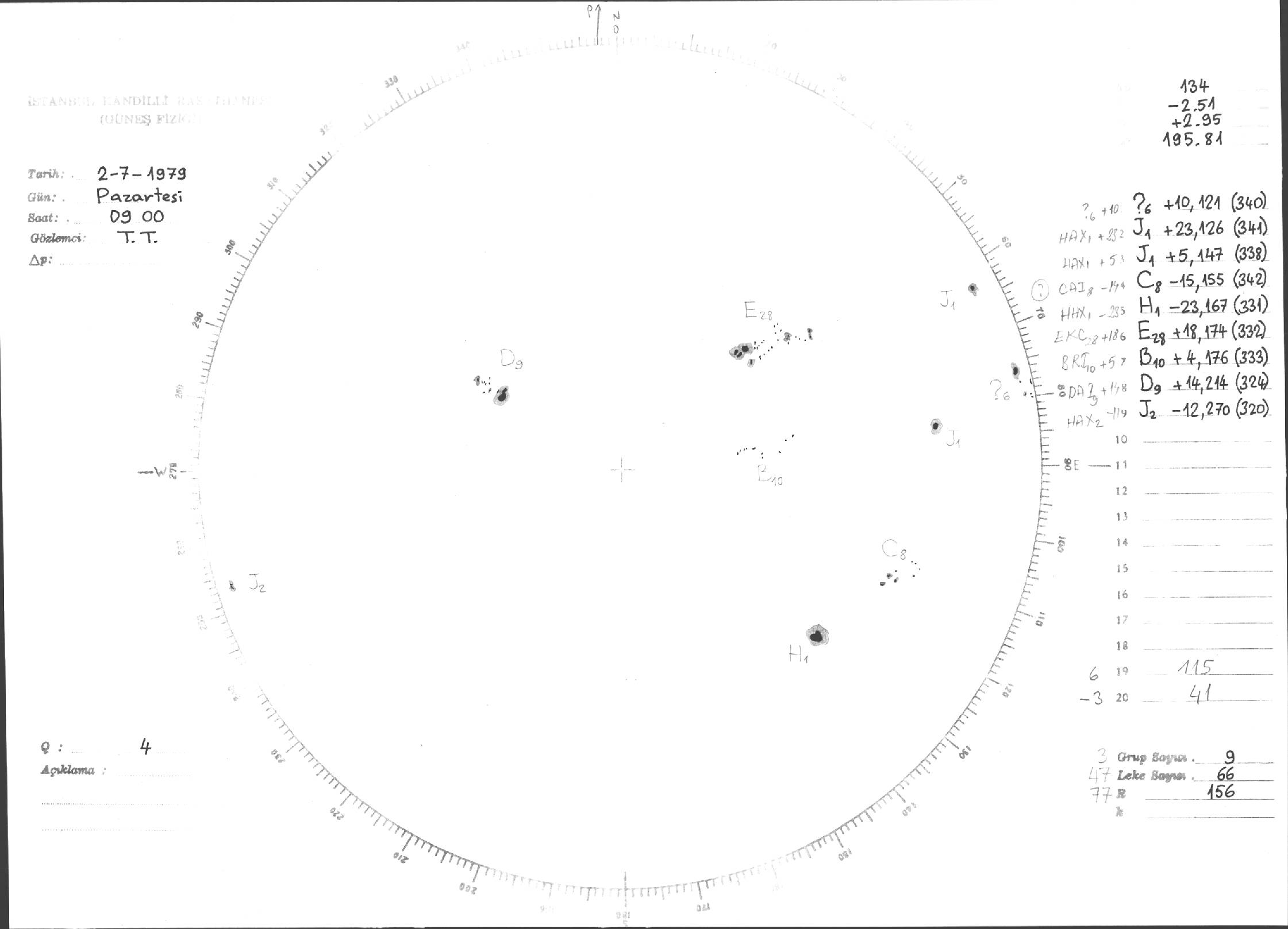 Güneş Lekesi Çizimi - 02.07.1979