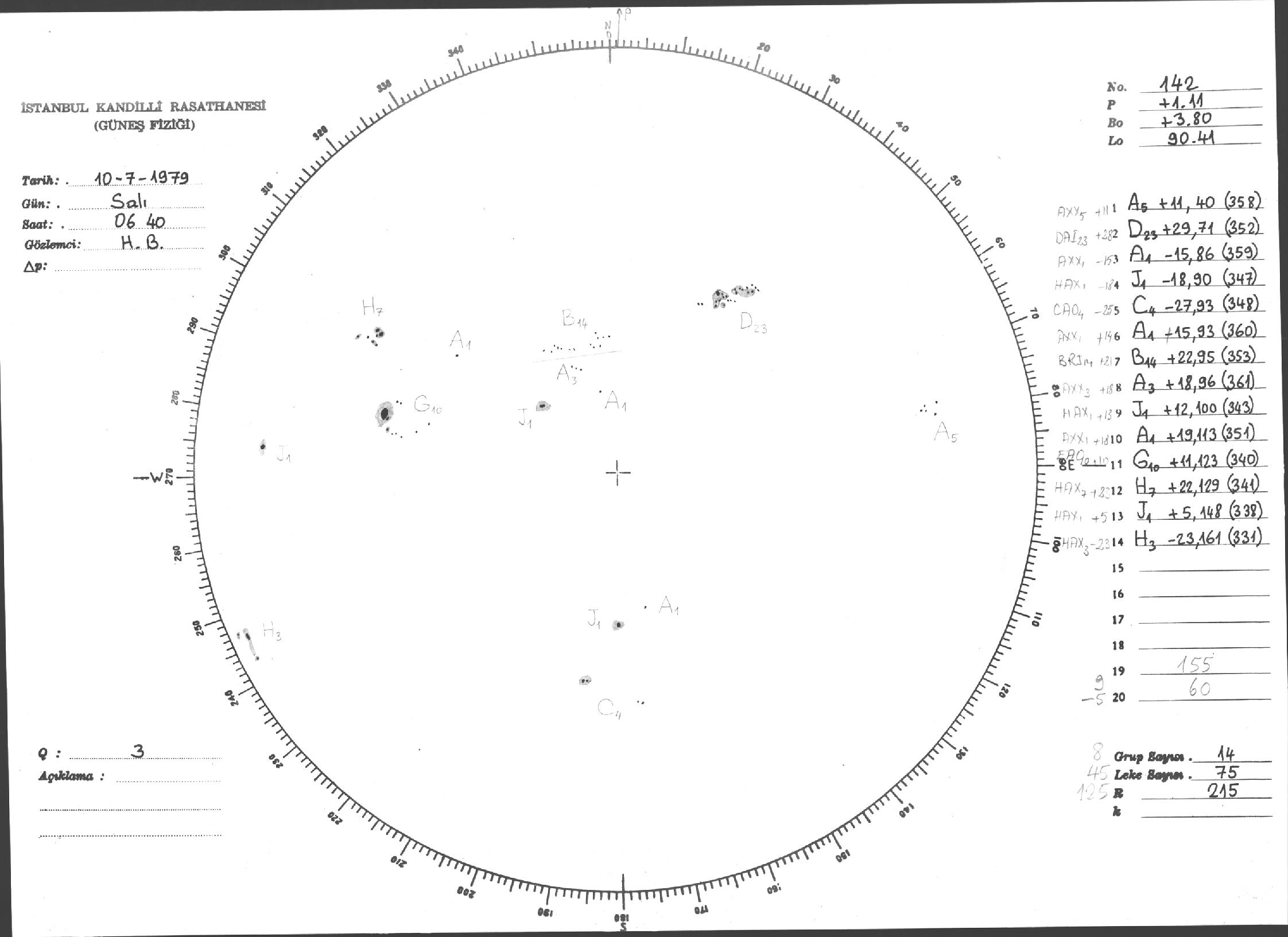 Güneş Lekesi Çizimi - 10.07.1979