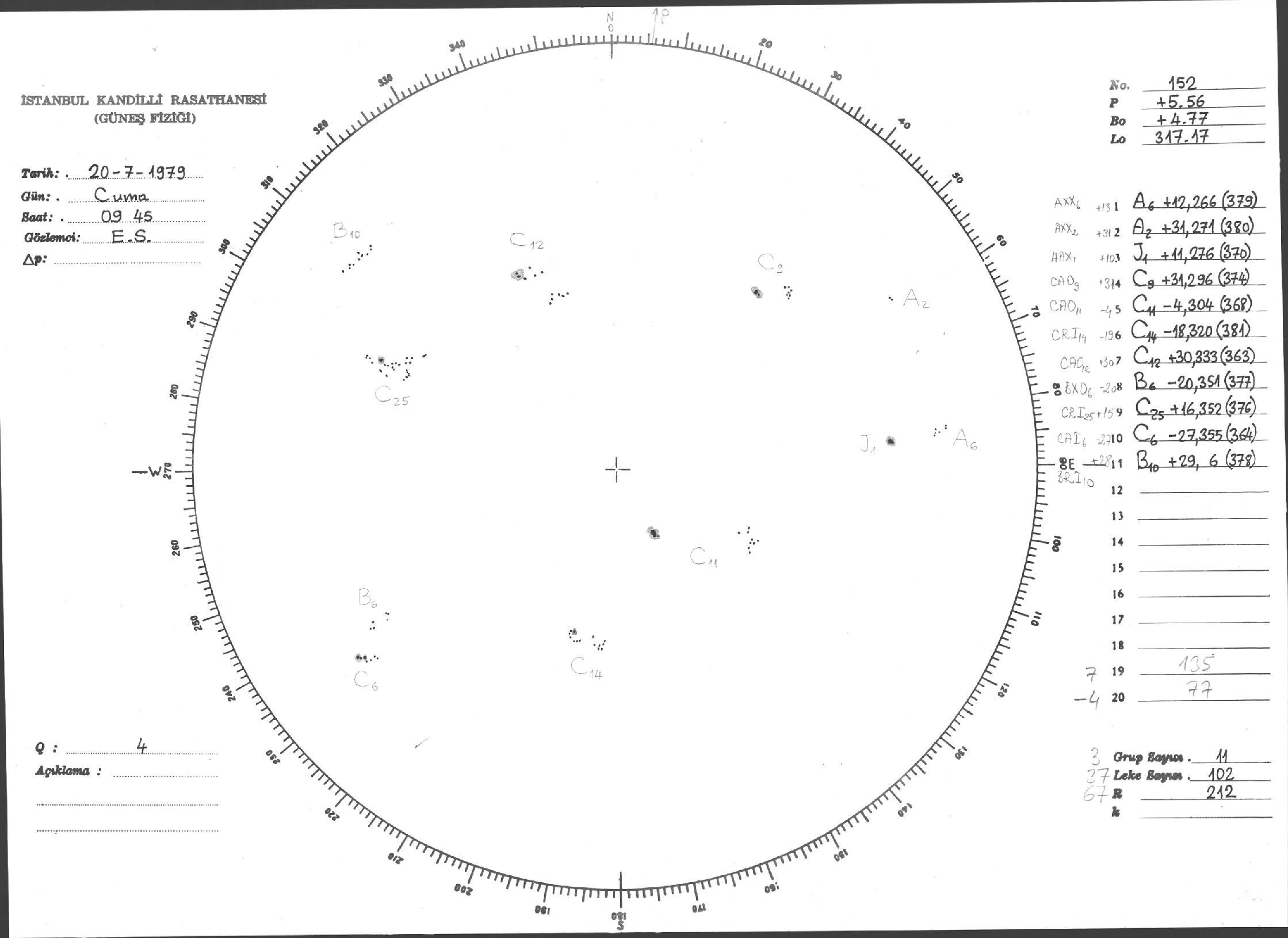 Güneş Lekesi Çizimi - 20.07.1979