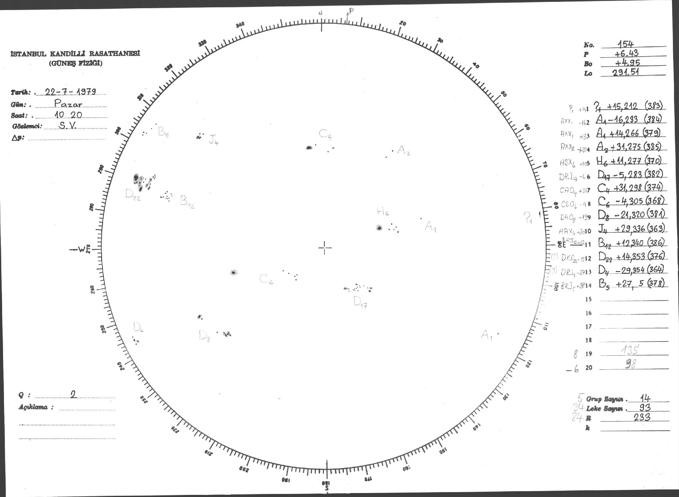 Güneş Lekesi Çizimi - 22.07.1979